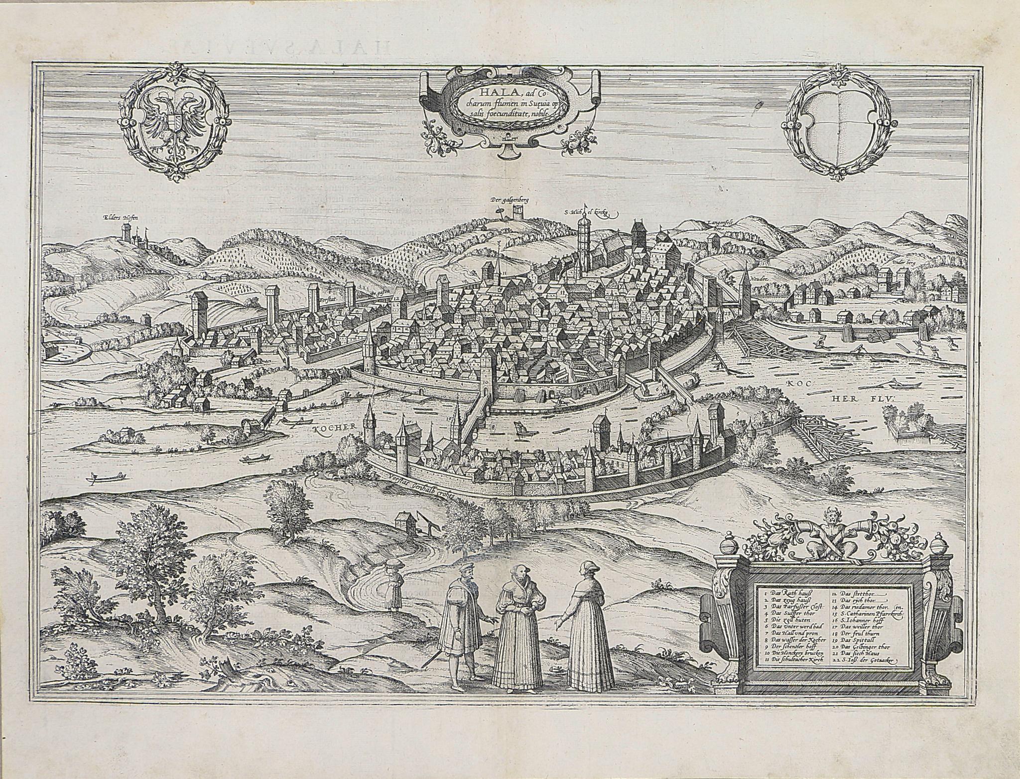Braun, Georg - Hogenberg, Frans: Hala, ad Cocharum Flumen in Suevia Op.