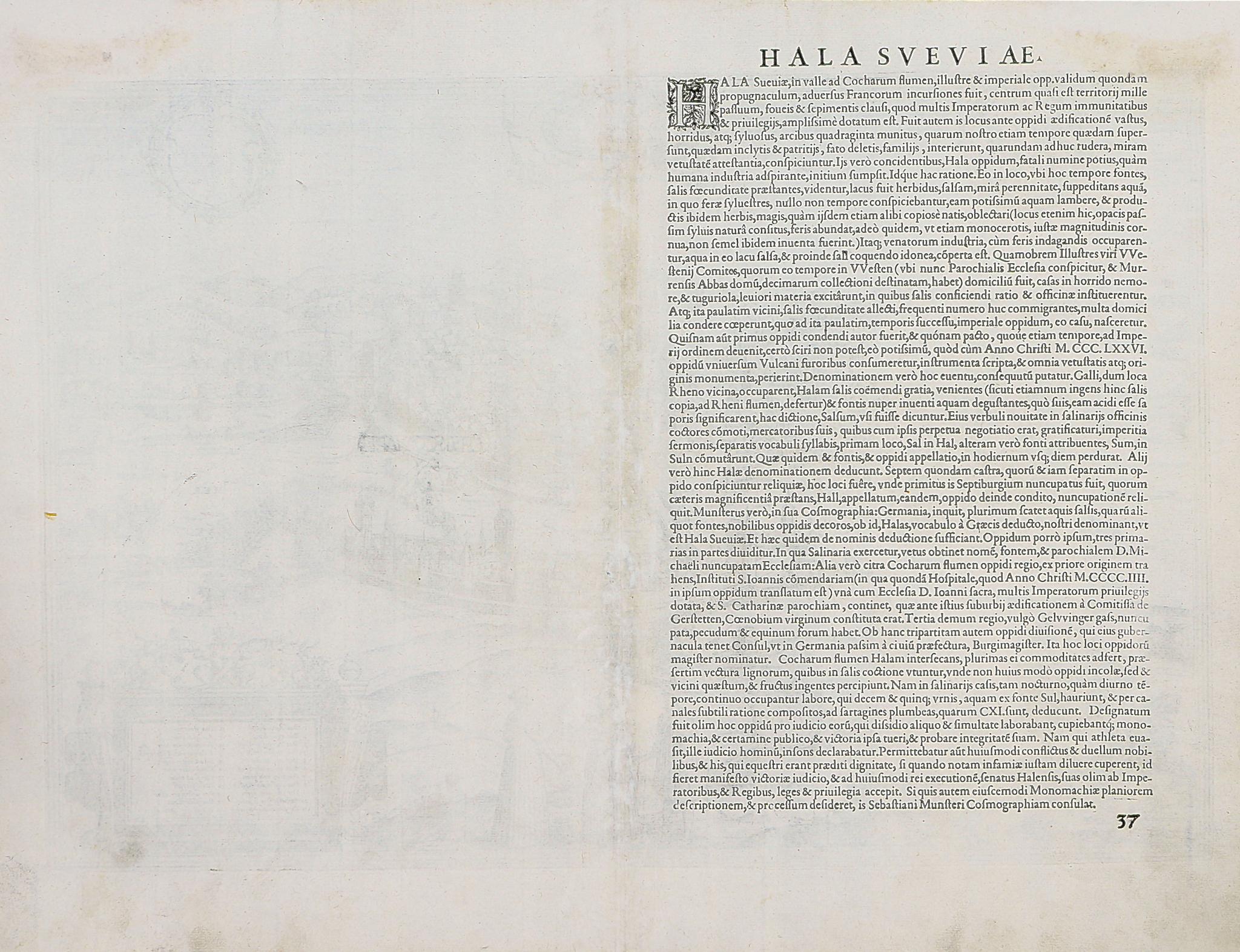Schwäbisch Hall látképe, a verson a város latin nyelvű leírásával.