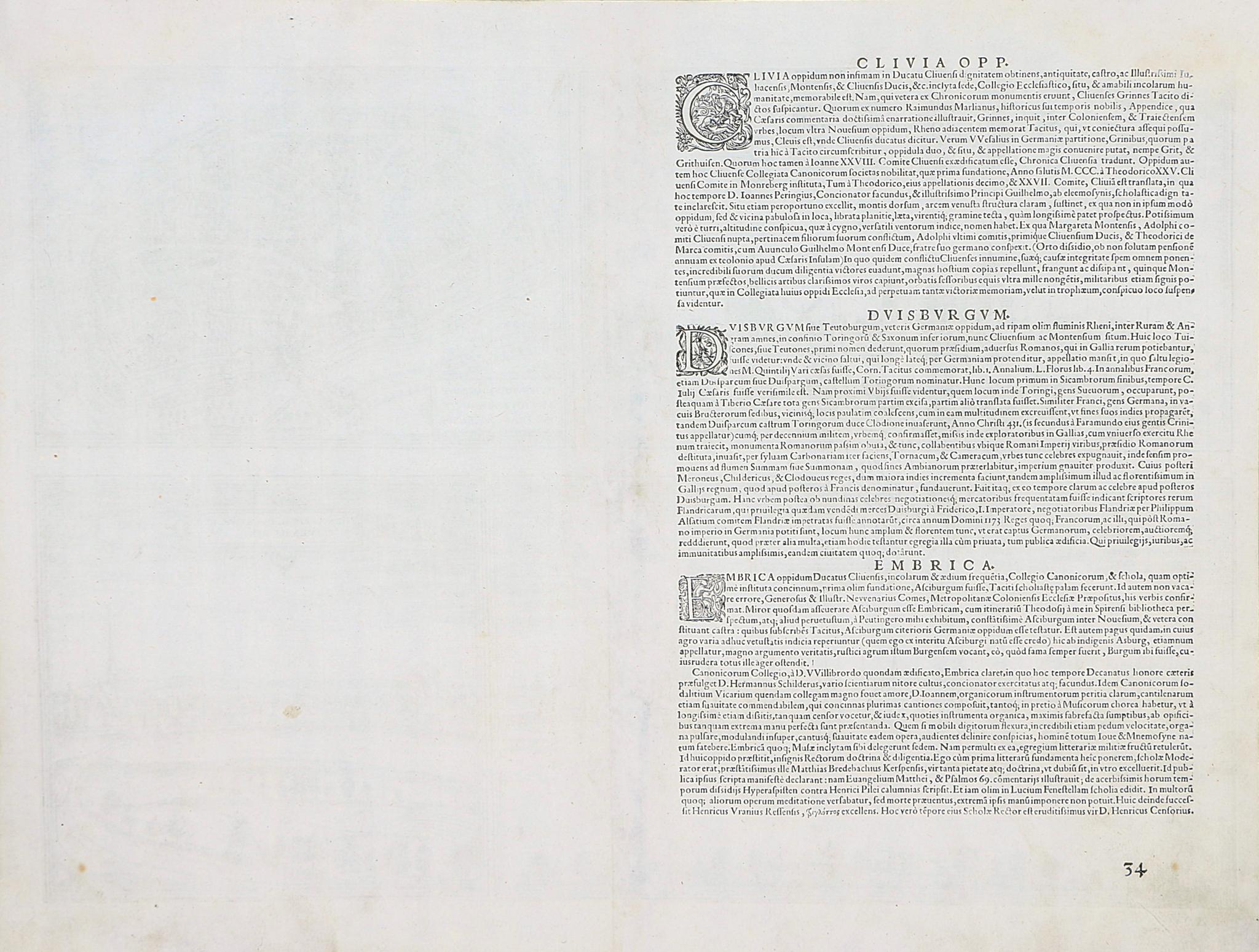 Cliviam, Ducatus Clivensis ... Duisburgum ... Embrica, Clivensis ditionis ... Gennapium Ducatus Clivensis.