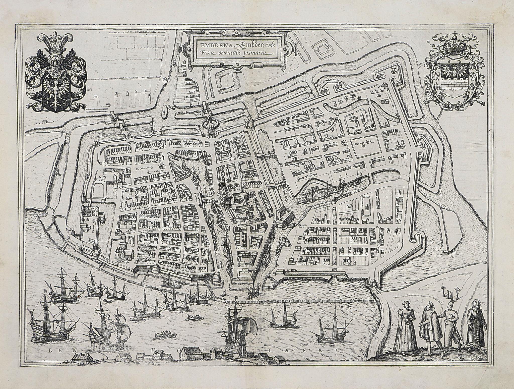 Birdeye-view of Emuda [Emden], capital of East Frisia.
