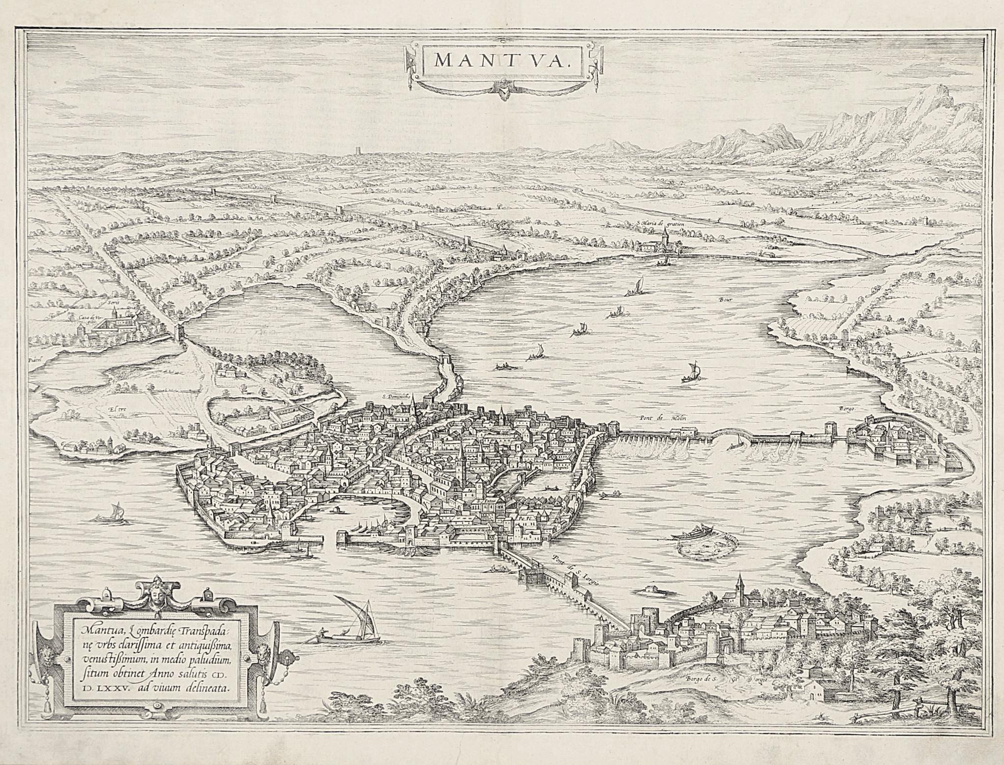 Braun, Georg - Hogenberg, Frans: Mantua. Mantua, Lombardie Transpadane urbs clarissima et antiquißima, situm obtinet Anno salutis M.D.LXXV, ad vivum delineata.