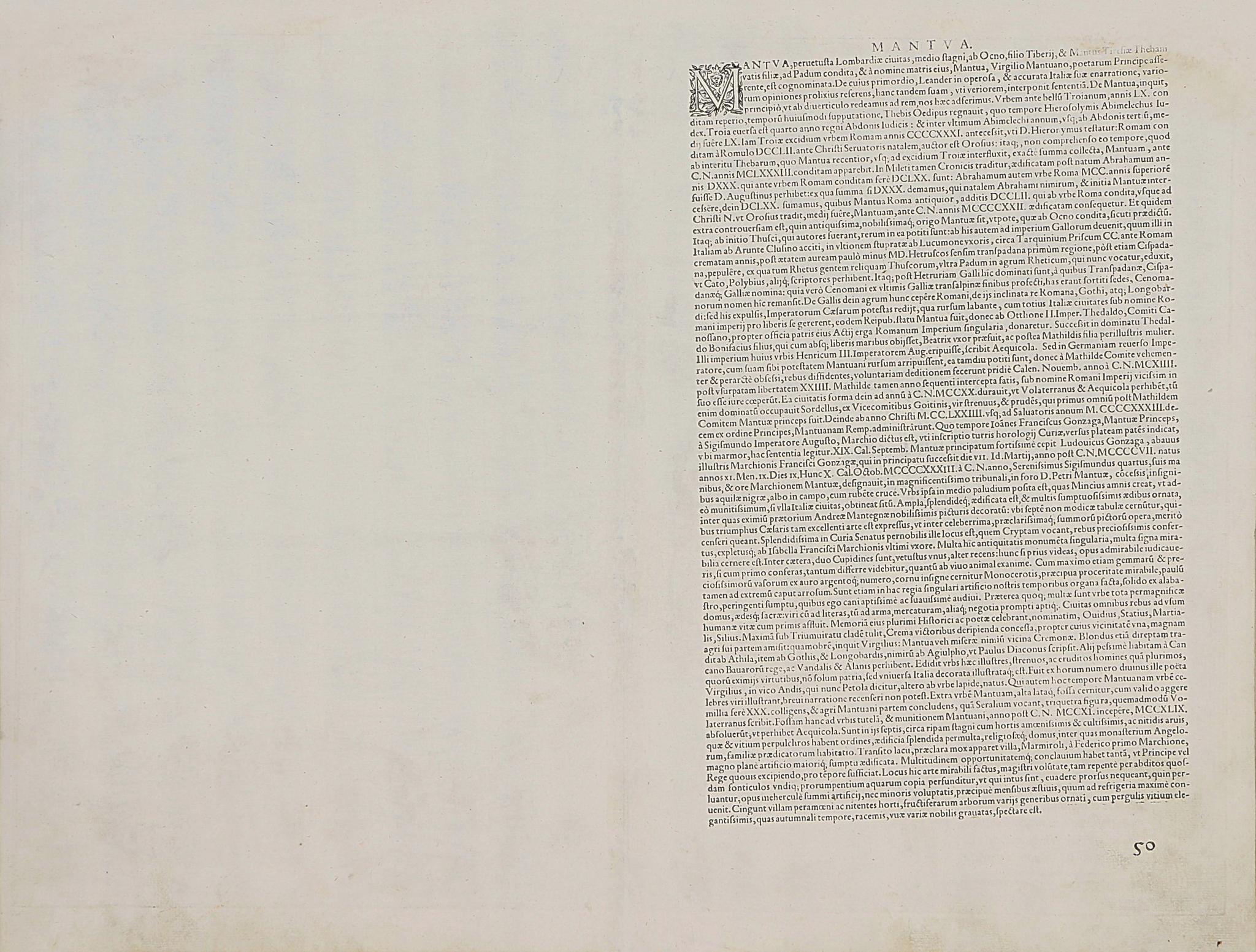 Mantova látképe, a verson a város latin nyelvű leírásával.