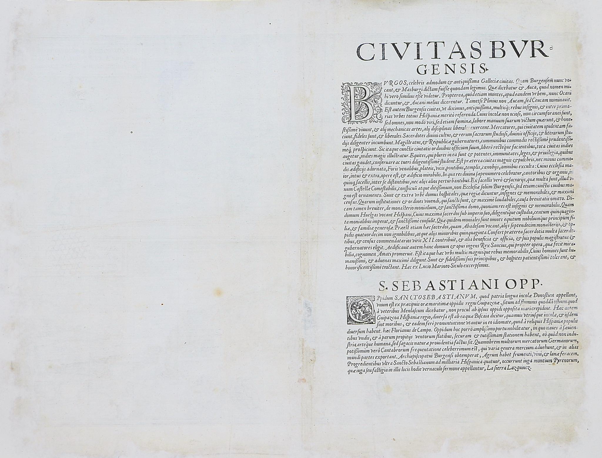 Burgos celebris et antiqua Hispaniae civitas, ... [on sheet with] Sanct. Sebastianum vulgo Donosien ad Occanum ...