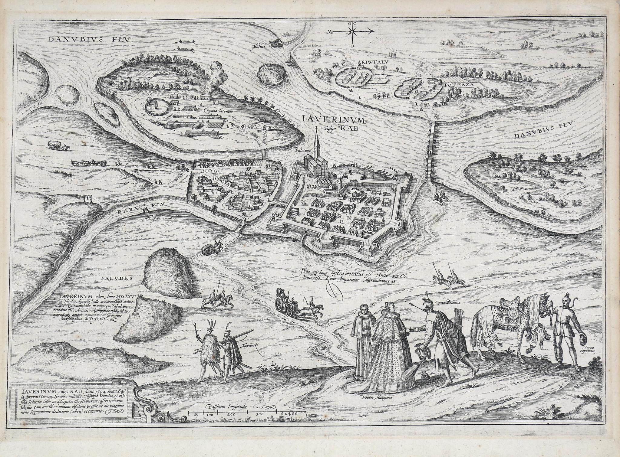 A képet Győr bástyás erődítményei és az olasz hadmérnökök által tervezett püspöki palota uralja. Ezek a jellemzők hangsúlyozzák a város szerepét a Habsburgok legkeletibb erődjeként az oszmán-habsburg háborúk idején. A Miasszonyunk-székesegyház közelében található palota a város többrétegű történelmét tükrözi, mivel egy korábbi római templom helyén épült.