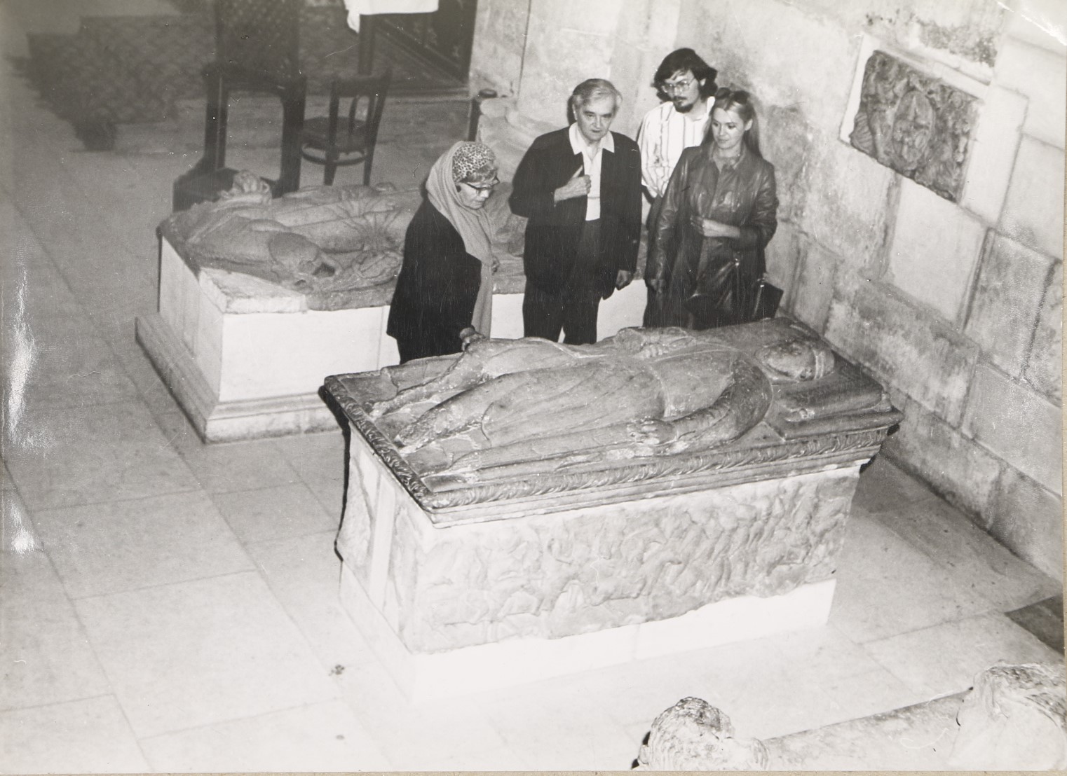 Károlyi Amy, Weöres Sándor, Szőcs Géza és Csengery Adrienne a Hunyadi család gyulafehérvári síremlékénél.