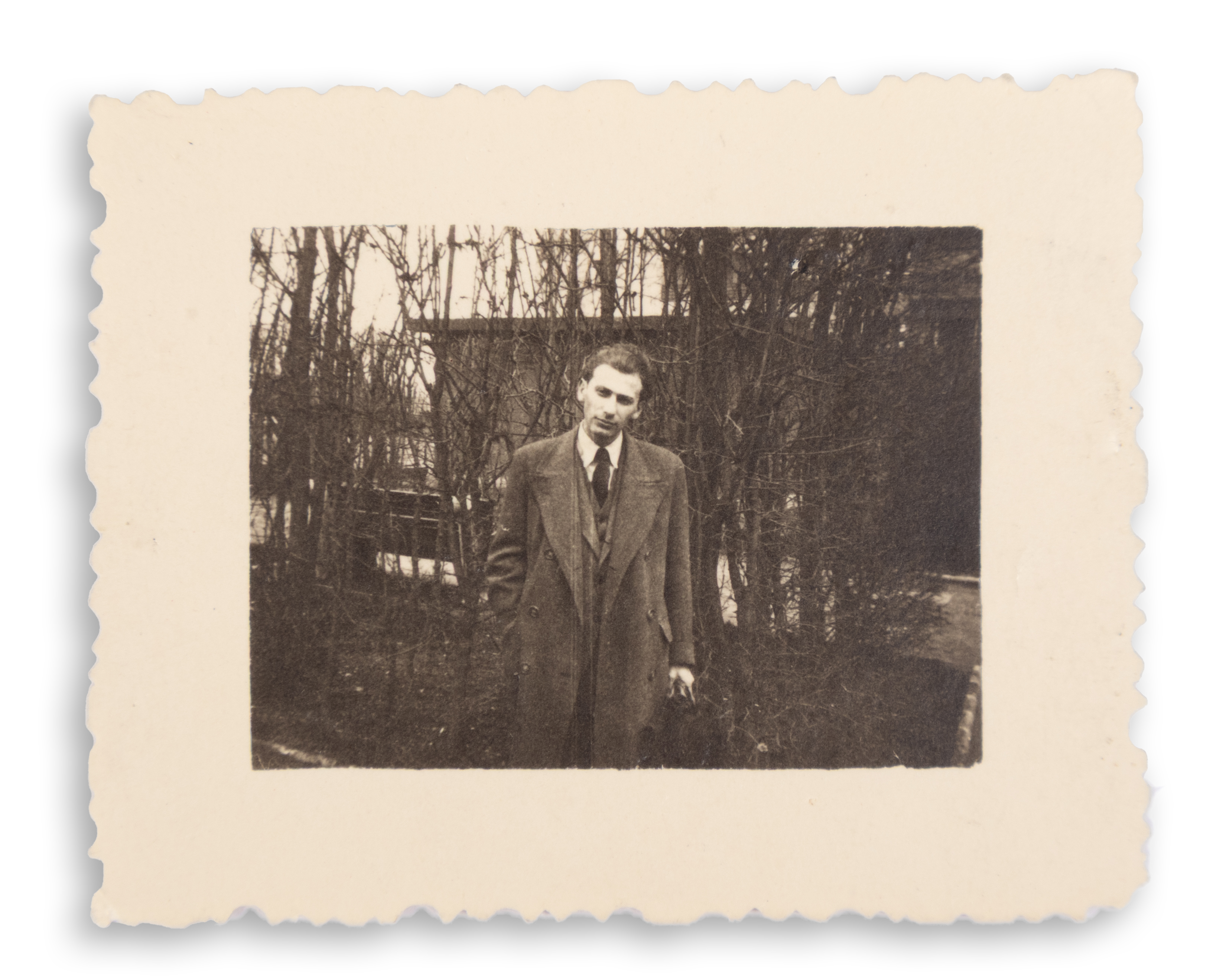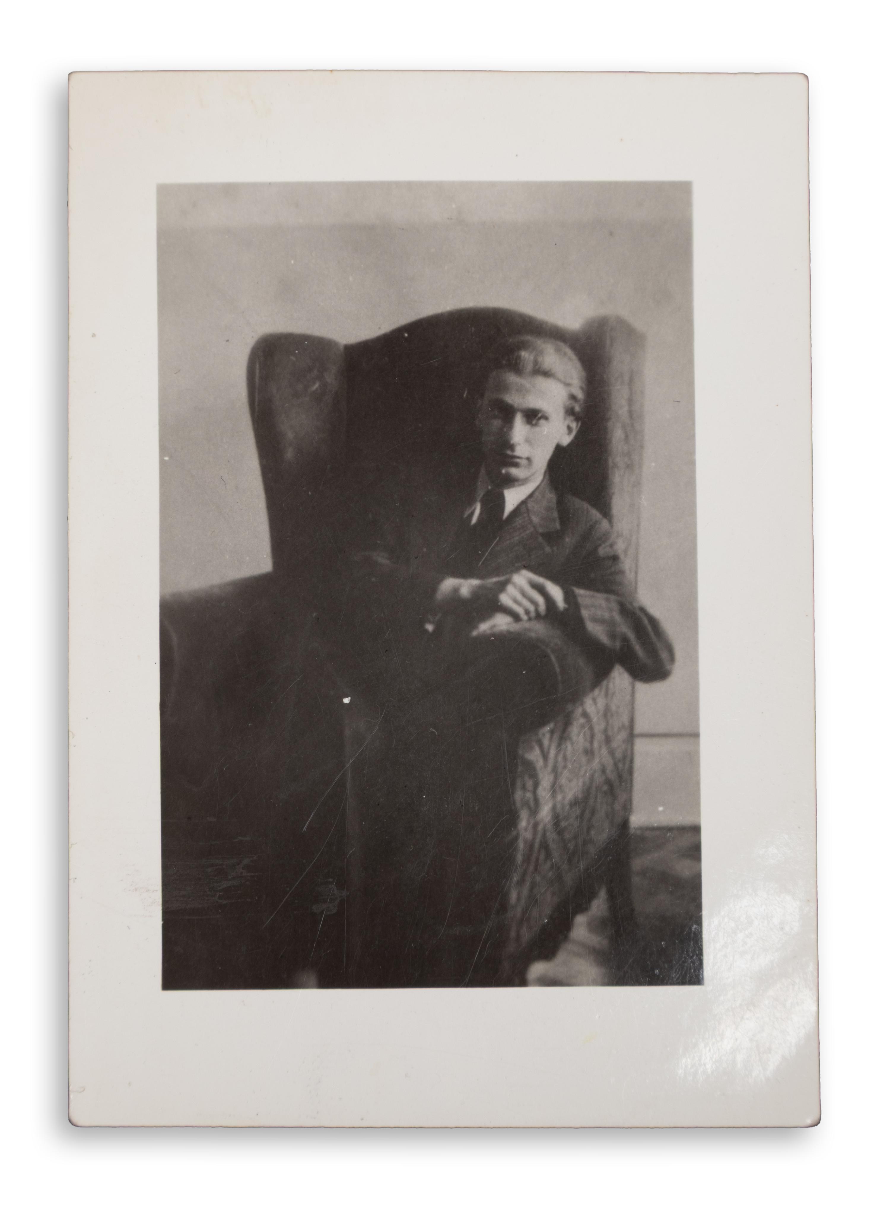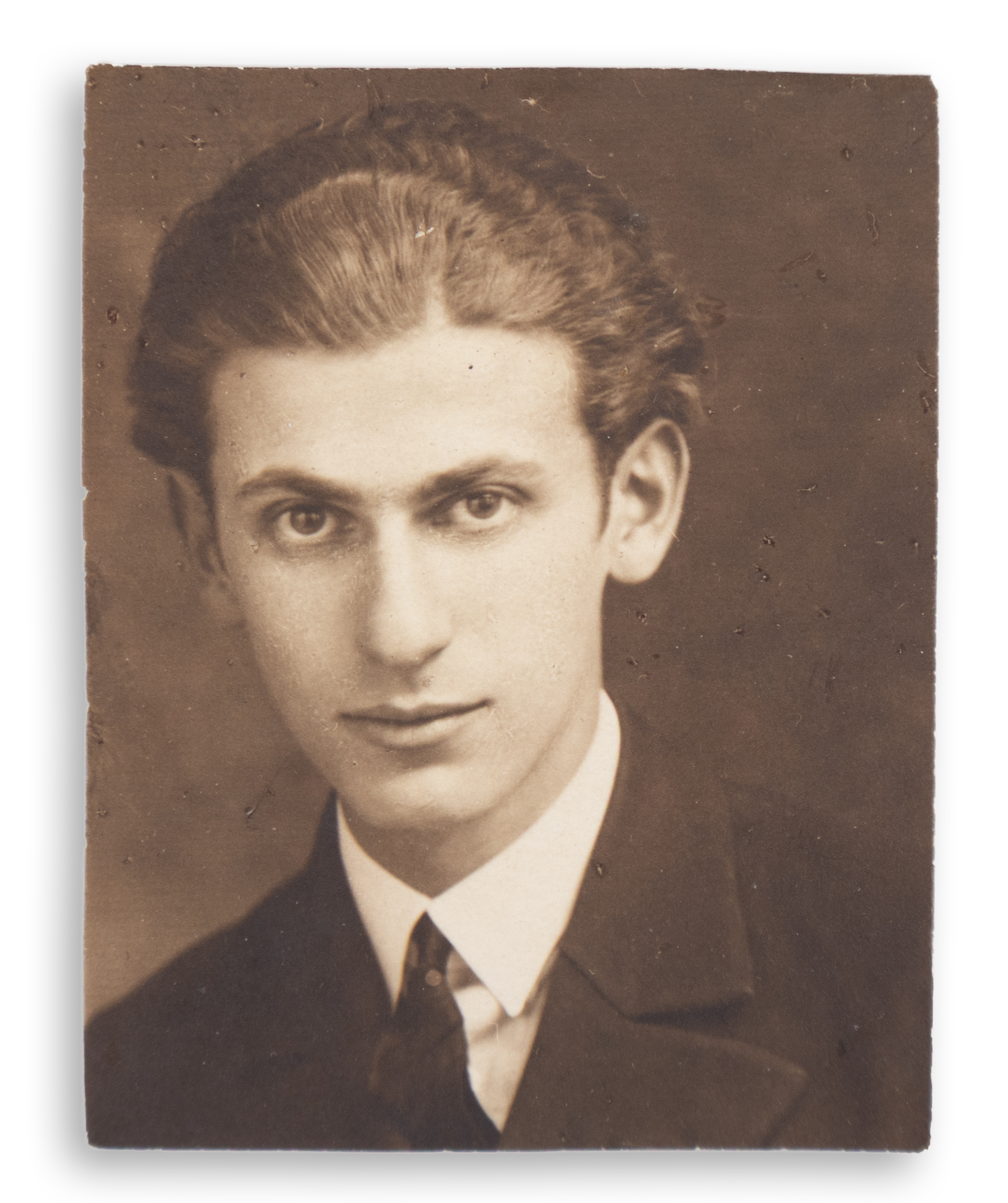 4. Radnóti Miklós feltehetőleg az 1930-as évek elején. A kép jobb oldalán és alján kisebb szakadással, valamint gyűrődésekkel. (Krähling: 113.) Mérete: 80 x 60 mm.