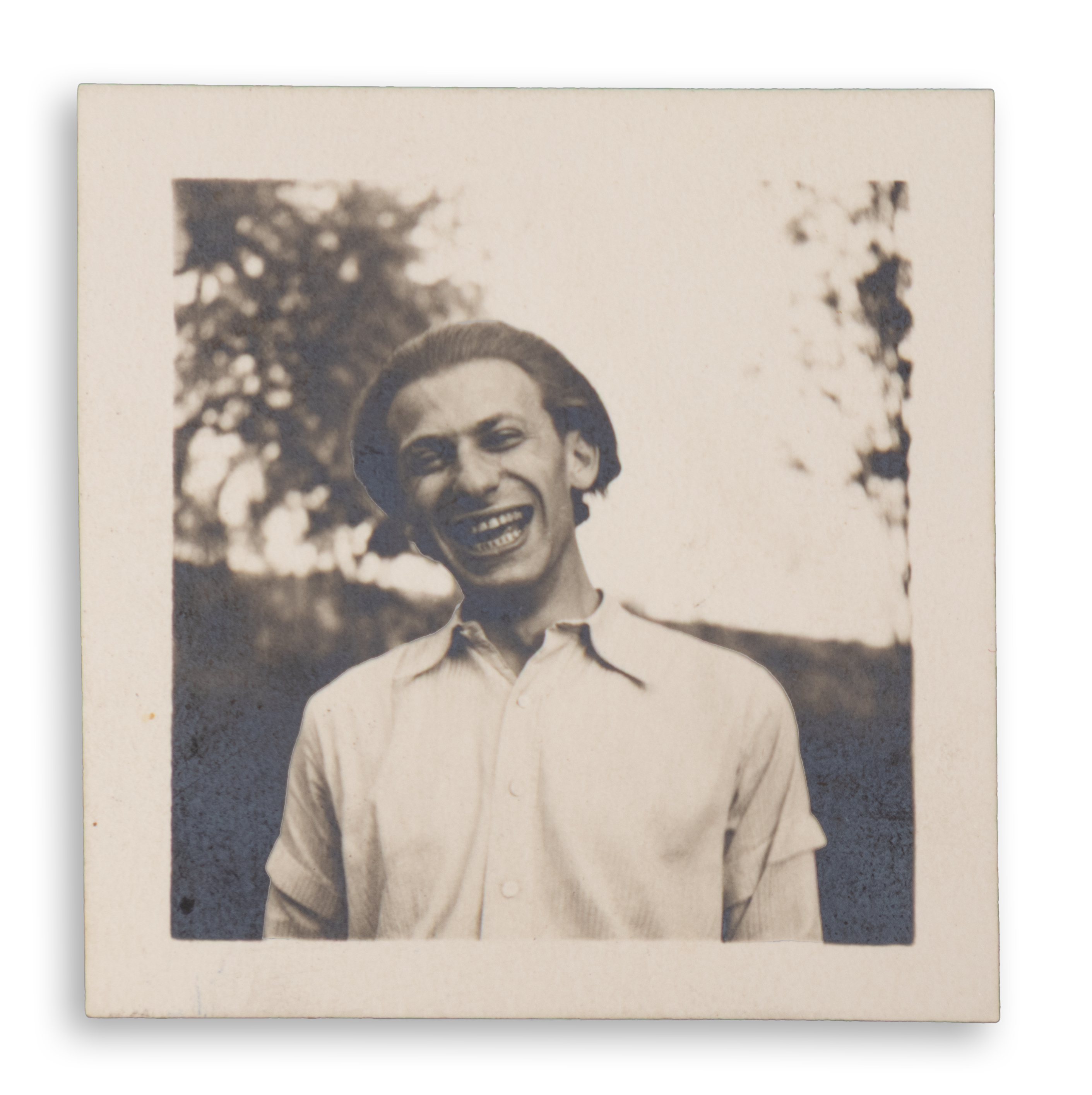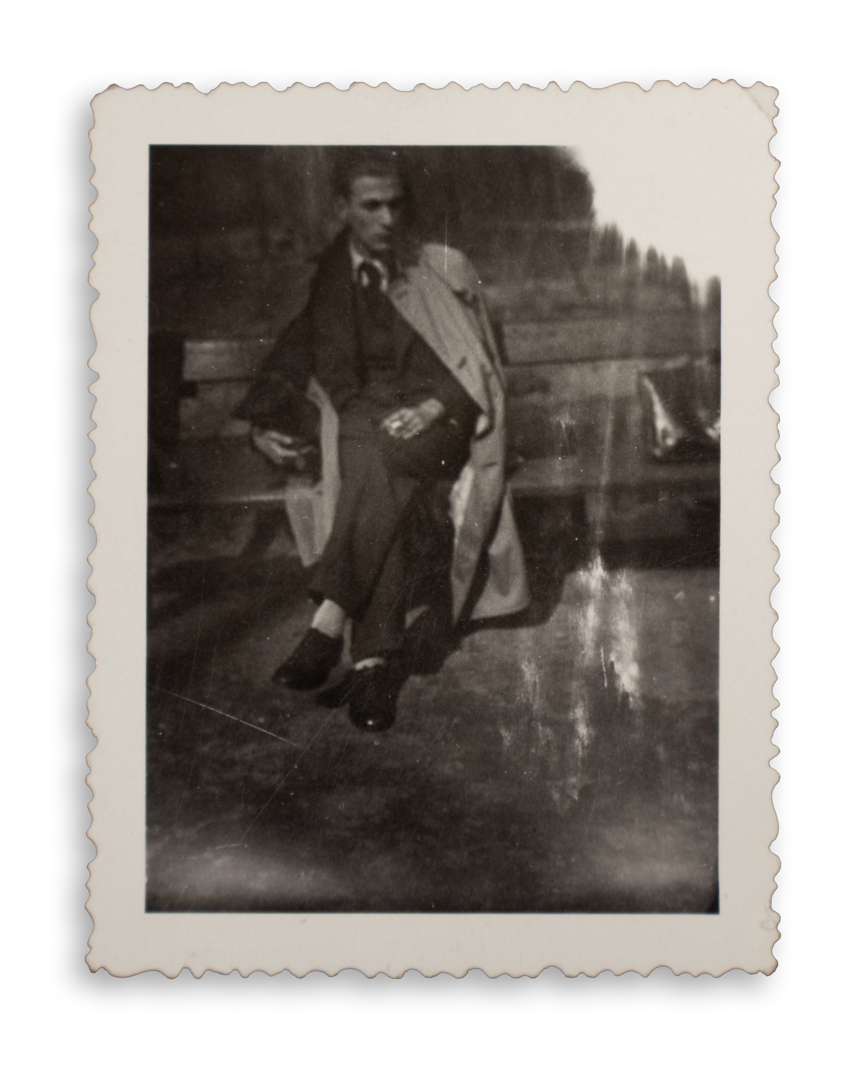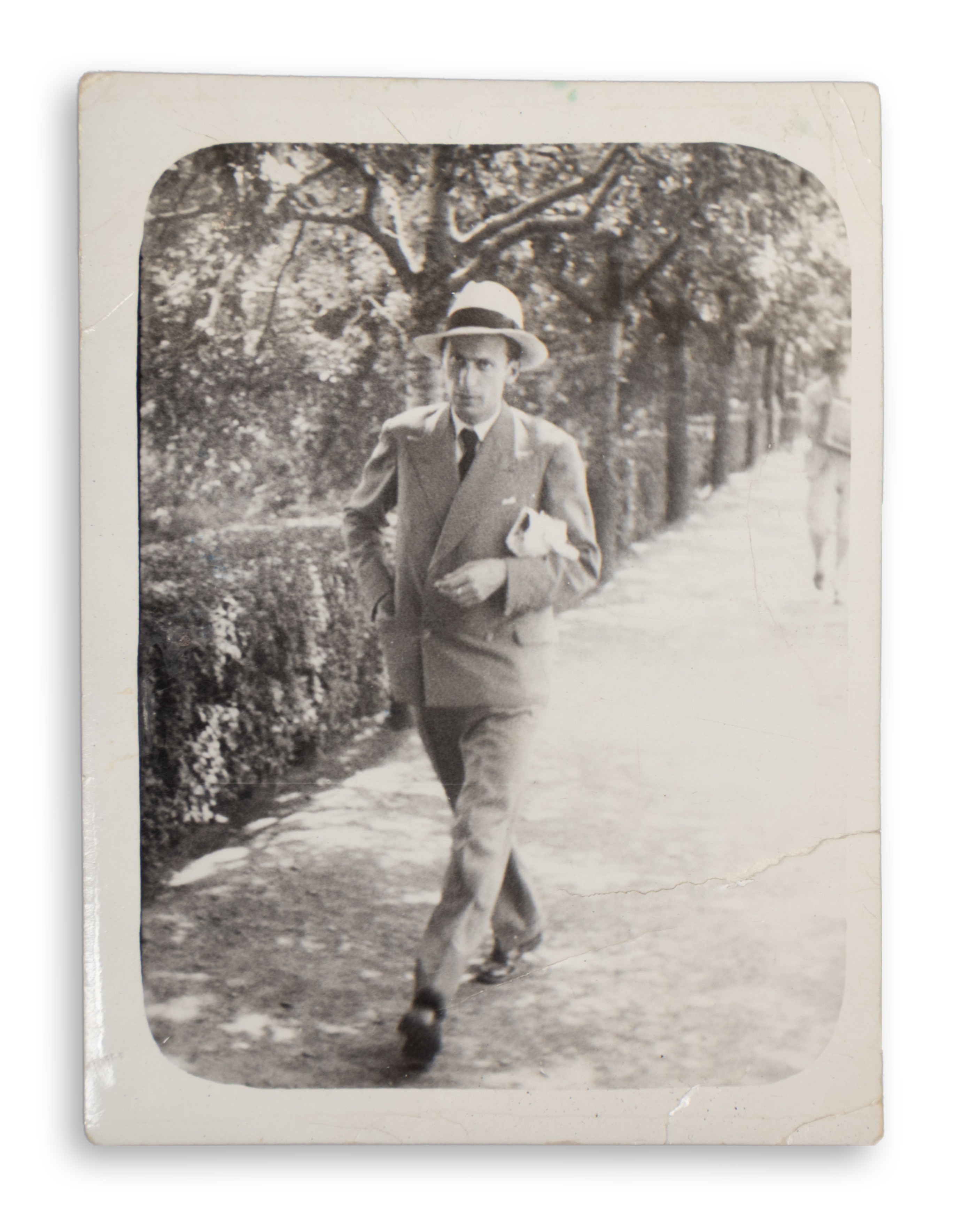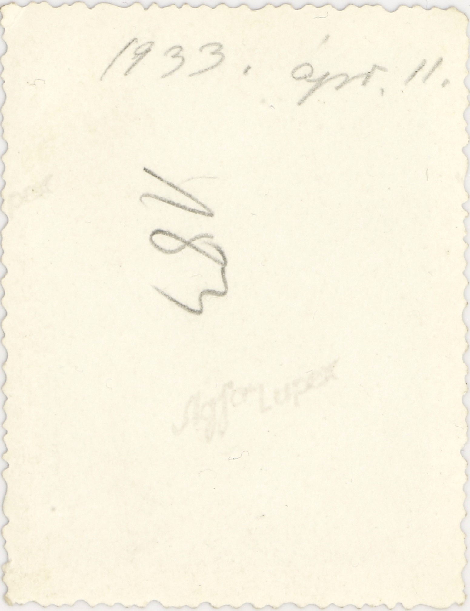 4. Radnóti Miklós feltehetőleg az 1930-as évek elején. A kép jobb oldalán és alján kisebb szakadással, valamint gyűrődésekkel. (Krähling: 113.) Mérete: 80 x 60 mm.