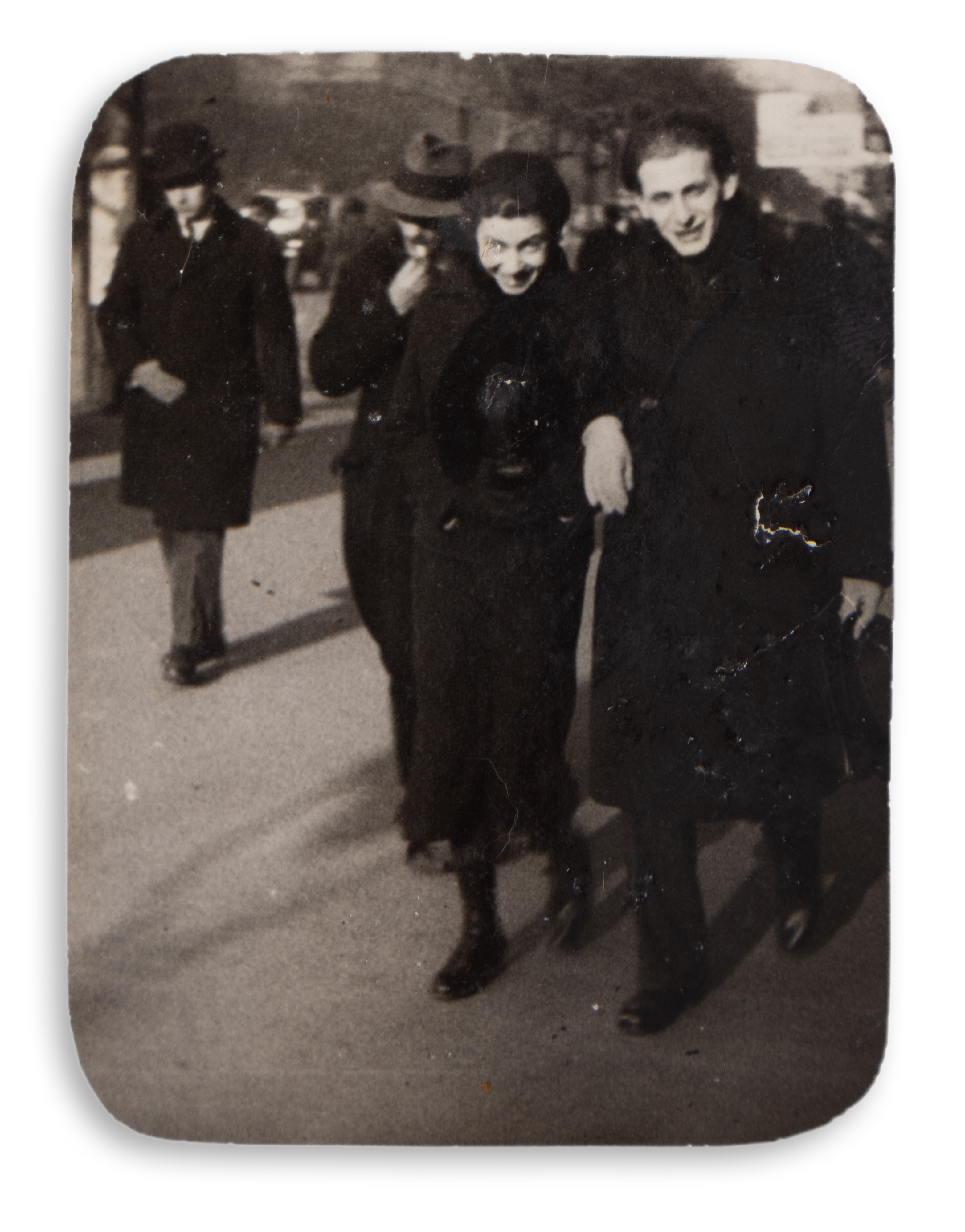11. Radnóti Miklós és Gyarmati Fanni Párizsban Koffán Károlyéknál (grafikus és fotóművész). A fotó Koffán Károly grafikus és fotóművész műtermében készült, a képen Radnótiékon kívül az Ortutay- és a Koffán-házaspár szerepel, az 1930-as évek jeles értelmiségei (Ortutay Gyula személyében pedig - akkor még leendő - vallás és közoktatásügyi miniszter). A képet Müller Miklós (Nicolás Muller) készítette. Alsó része hiányzik. Hátoldalán piros ceruzával bejegyzés, feltehetőleg Gyarmati Fanni kézírásával: „1939 Paris”. (Krähling: 197.) Mérete: 60 x 58 mm.