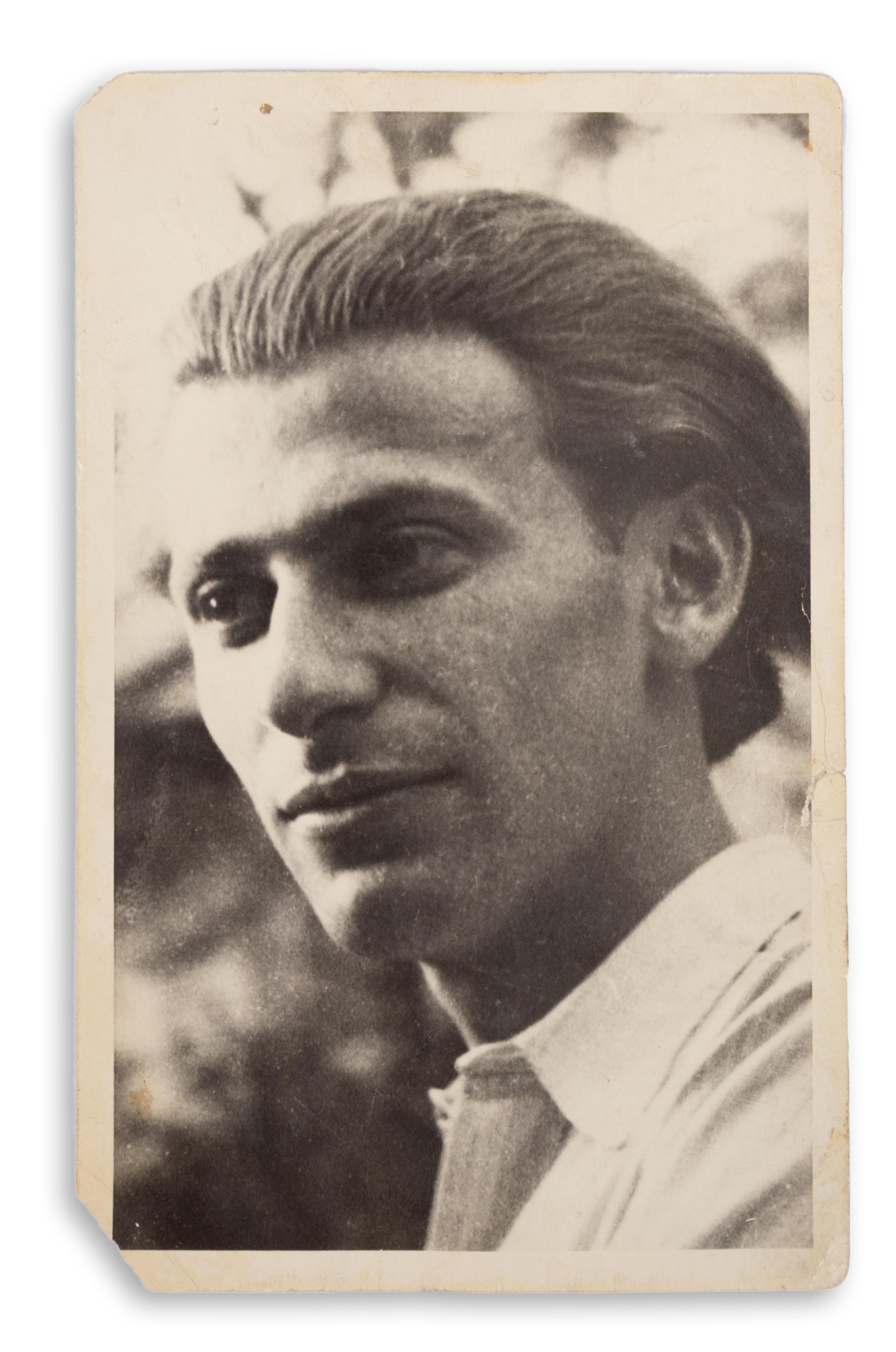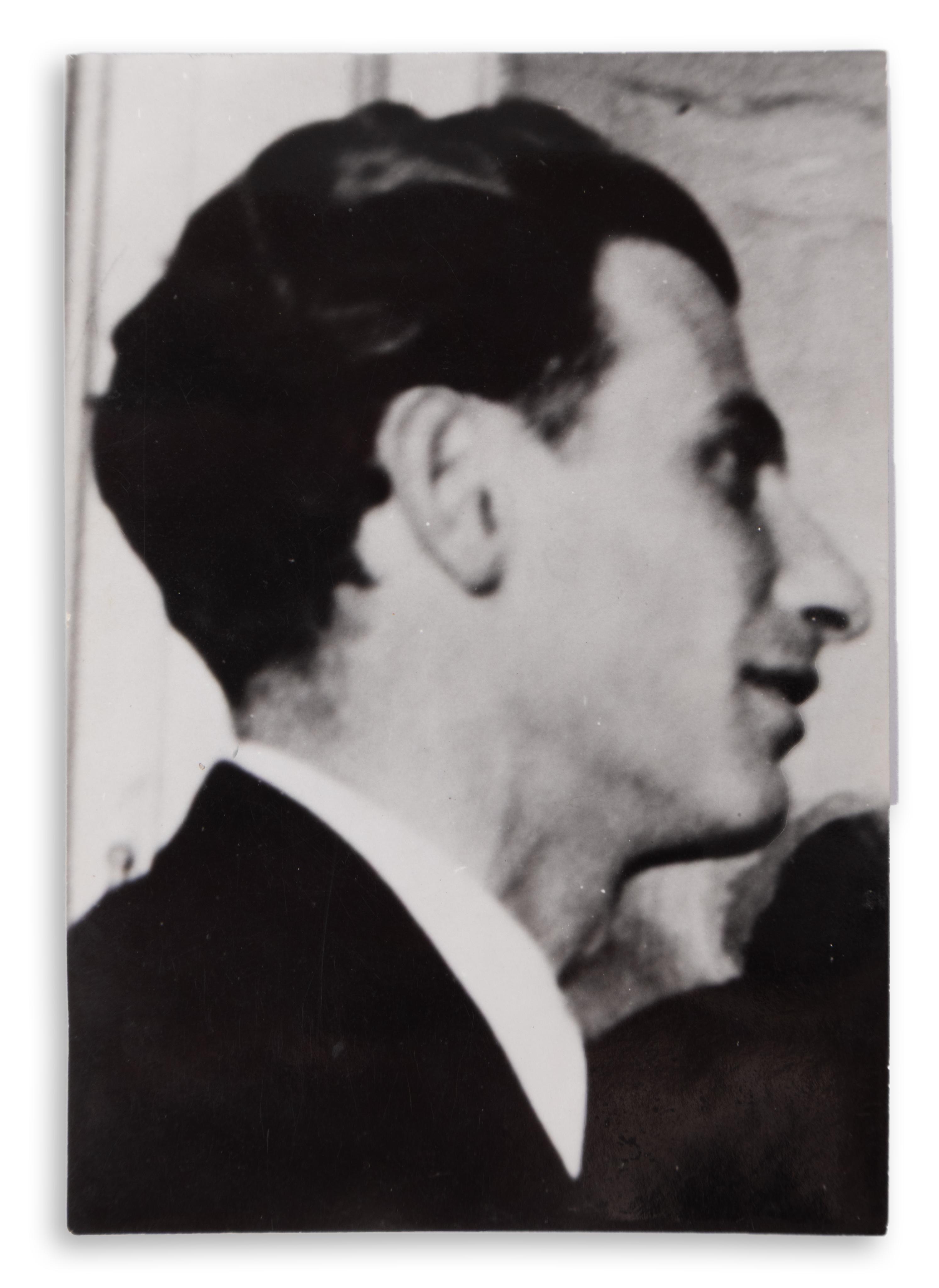 14. Radnóti Miklós. Ismeretlen kép, amely profilból ábrázolja Radnótit. Feltehetőleg egy csoportképből vágták ki. Mérete: 101 x 70 mm.