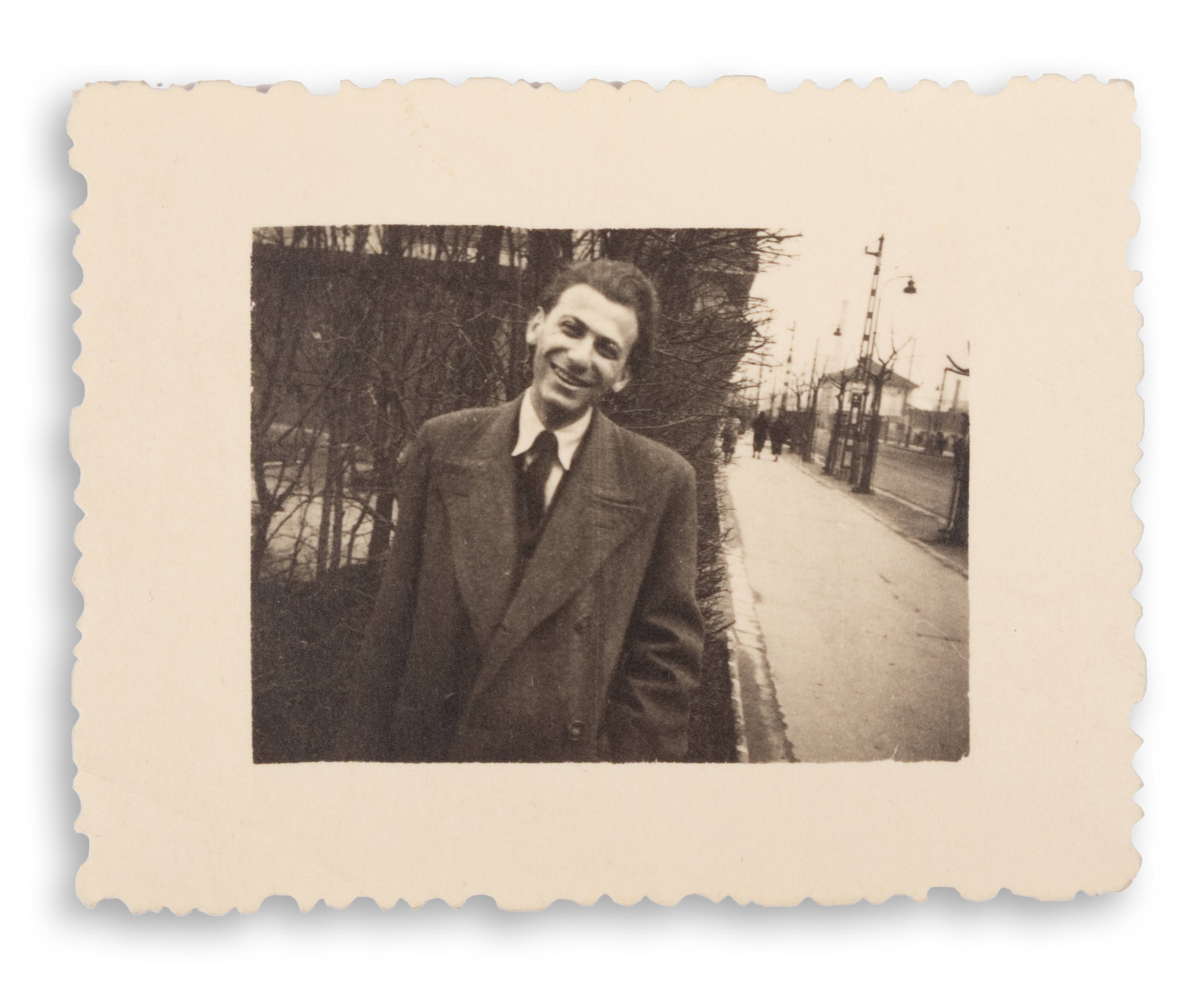 6. Radnóti Miklós Szegeden, a Bokor utcai albérlet előtt 1934-ben. A képet Müller Miklós (Nicolás Muller) készítette. (Krähling: 115.) Mérete: 42 x 42 mm.