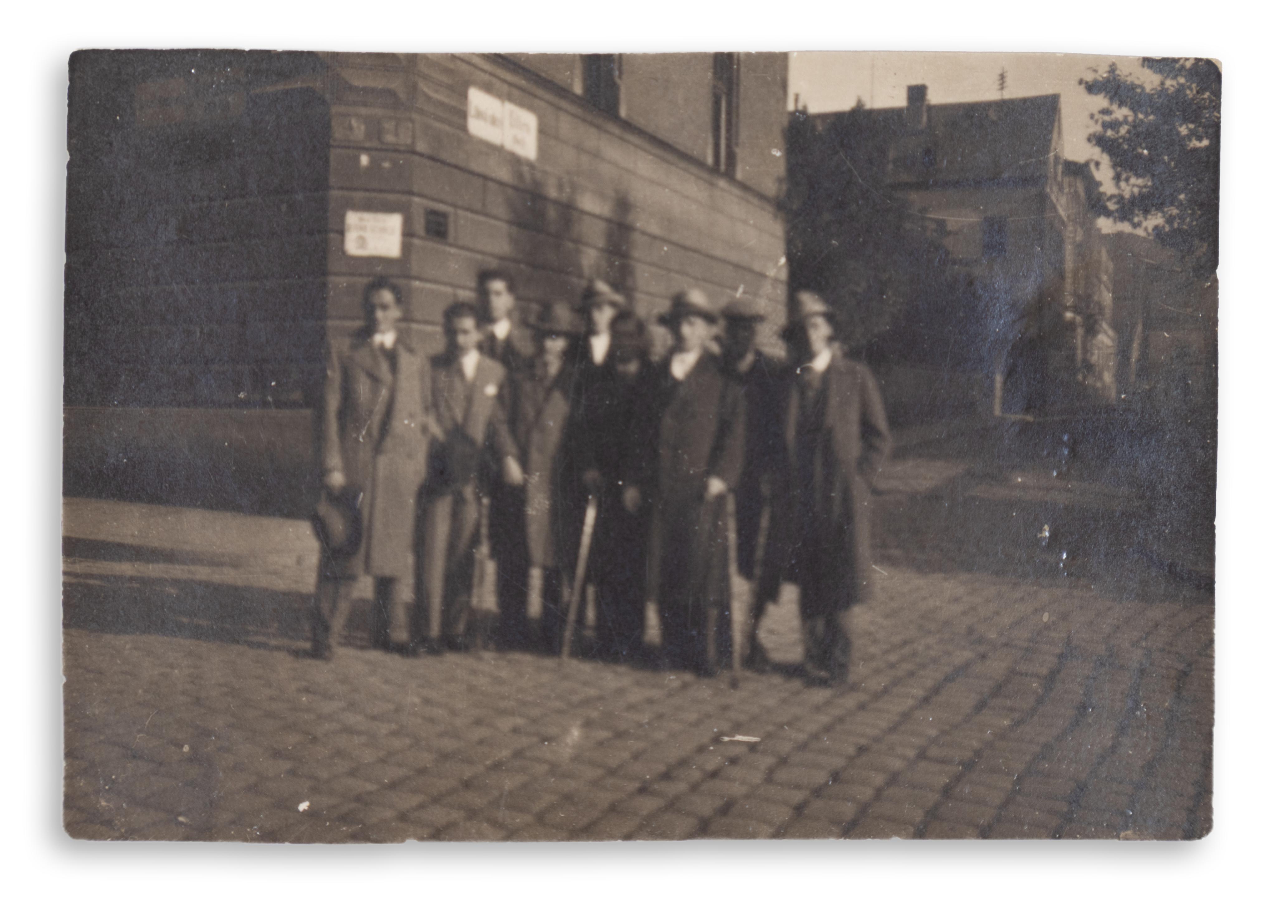 3. Radnóti Miklós Reichenbergben (a mai Liberec) 1927-ben. Hátoldalán autográf bejegyzés: „1927. X. Lerchenfeldgasse./(Fleischner)” A képet Fleischner István készítette. Radnóti valószínűleg jobbról az első. Publikálatlan. Mérete: 55 x 80 mm.