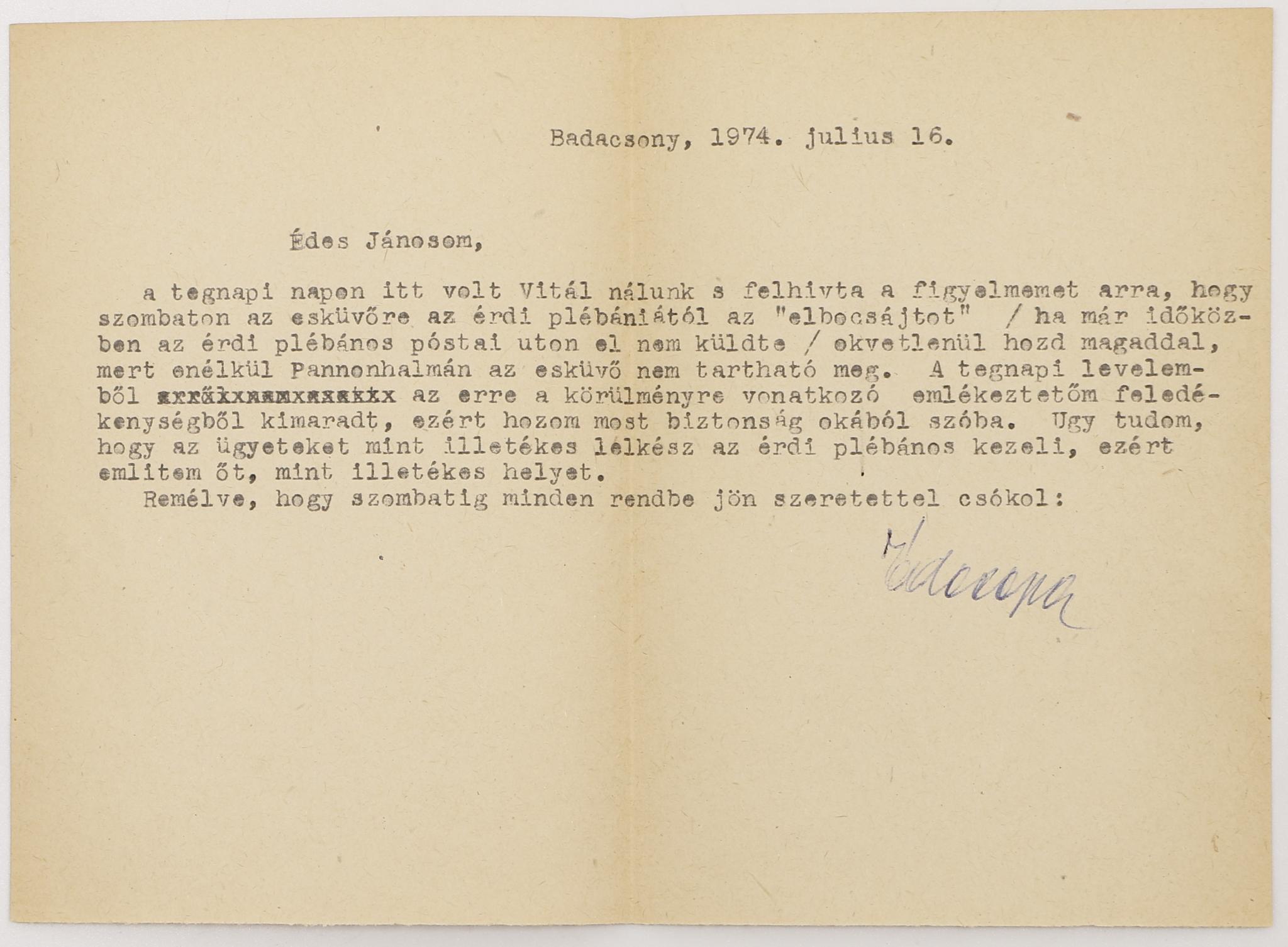 Hozzá: egy Keresztury János által írt levél.