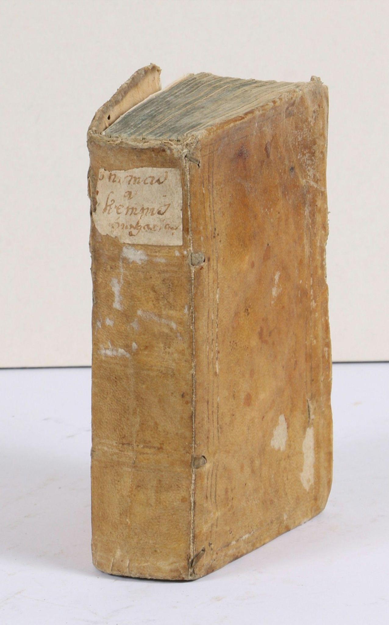 1638 BécsKempis Tamasnak Christus követeserül négy könyvei, mellyeket magyarrá forditott Pazmany Peter esztergami ersek. [Bécs] (Viennae Austriae), 1638. [ex Officina typographica Gregorii Gelbhaar]. [10] + 436p. Példányunkban a rézmetszetű címlap egyharmada, valamint az utolsó előtti két levél kiegészített, az utolsó pótolt. Pázmány Péter híres Kempis fordításának második kiadása. A lelki életet elemző kifejezések magyar megfelelőjének megteremtésével a hazai irodalom és anyanyelvűség figyelemre méltó alkotásává emelkedett. Ez Pázmány írói tudatosságából fakad, melyet jól jellemez az előszónak az a kijelentése, miszerint arra törekedett, hogy a fordítás: „ne láttatnék Deákból csigázot homályossággal repedezetnek, hanem oly kedvesen folynék a szó mint-ha először Magyar embertül magyarúl iratot volna”. Bár szövegében elkerülhetetlenül maradtak latinizmusok, írása mind a mai napig a legsikerültebb Kempis fordításnak tekinthető. Új fordítás csupán majdnem 200 évvel később, 1807-ben született. A munka magyar nyelven elsőként Vásárhelyi Gergely teljes fordításában látott napvilágot (Kolozsvár, 1622), azonban Pázmány munkája (első kiadása Bécs, 1624) elődjénél jóval népszerűbbé, elterjedtebbé vált. Népszerűségét bizonyítja, hogy számtalan kiadása jelent meg, XVII. századi kiadásait pedig annyira használták, hogy csupán néhány példány maradt ránk belőlük. Ez a második kiadás szerkezetében, beosztásában megegyezik az első kiadáséval, azzal a különbséggel, hogy a sajtóhibajegyzéket nem tartalmazza, címlapja az első kiadás címlapjának utánmetszése. Szabó Károly ugyan felveszi bibliográfiájába a Pázmány-féle fordítás állítólagos 1604-es kiadását, azonban mára bebizonyosodott, hogy ez csupán egy korábbi bibliográfiai tévedés folytán került be az irodalmi köztudatba. A vallásos érzület megújítását, személyessé tételét célzó elmélkedéseket tartalmazó mű, az ellenreformáció egyik legfontosabb oszlopa. A fordítás eredetije a De imitatione Christi libri quattuor című elmélkedő könyv, amely a középkor végétől számtalan kiadásban terjedt el. Szerzője Thomas Hemmerlein a Kempis, közismert nevén Kempis Tamás, németalföldi ágostonrendi kanonok, a vallásos élet megújítását célzó középkorvégi irányzat, a devotio moderna úttörője. Rendkívül ritka mű, közgyűjteményben összesen három példánya ismert. Árverésen tudomásunk szerint a világháború óta ez az egy példány szerepelt csak. (Központi 165/98) Poss.: „Ex libris Georgy Görgey” Korabeli pergamenkötésben. RMNy. 1713. RMK I. 674. Borda 7835. In contemporary vellum-binding.