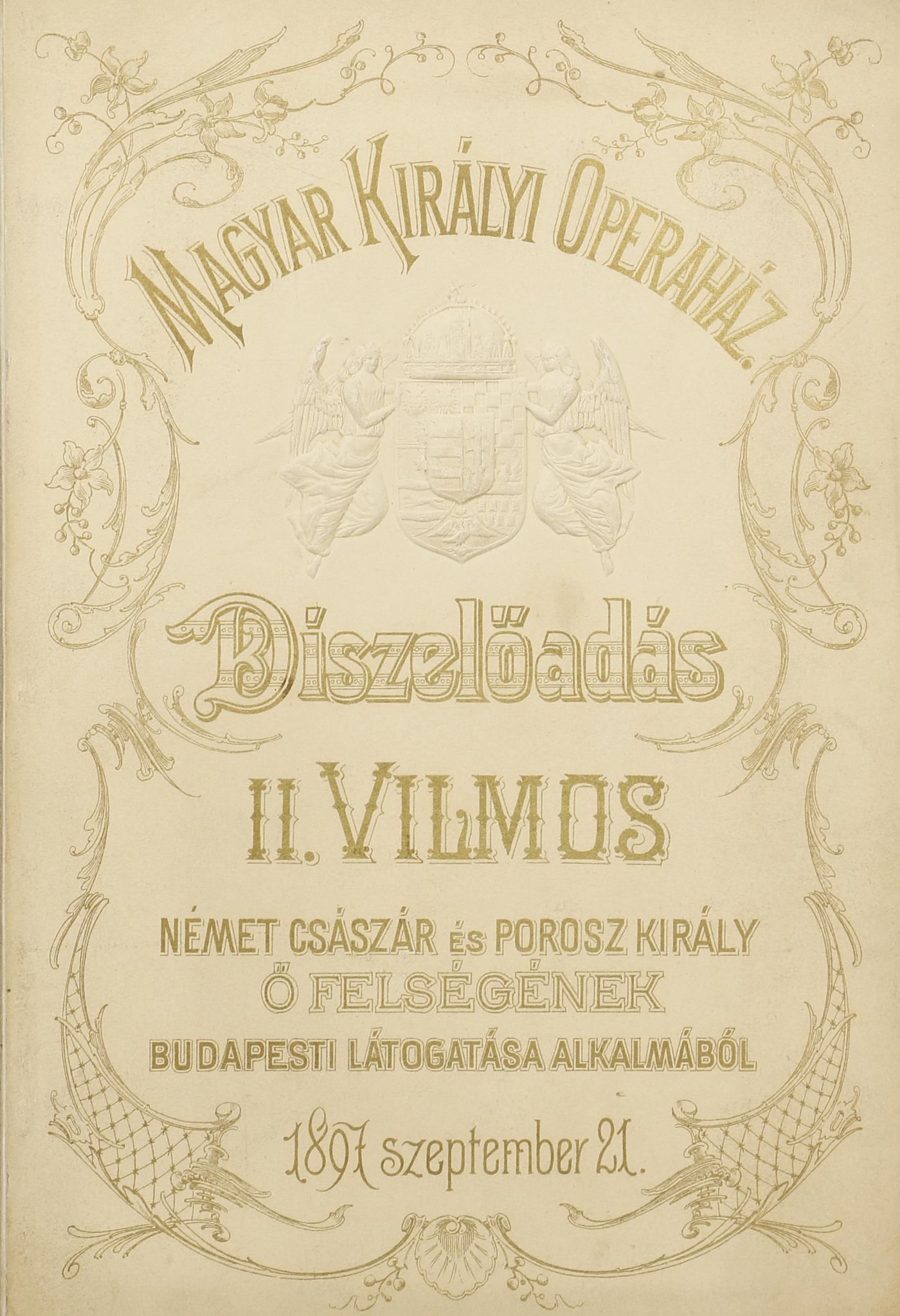 Díszelőadás II. Vilmos német császár és porosz király Ő felségének budapesti látogatása alkalmából 1897. szeptember 21.