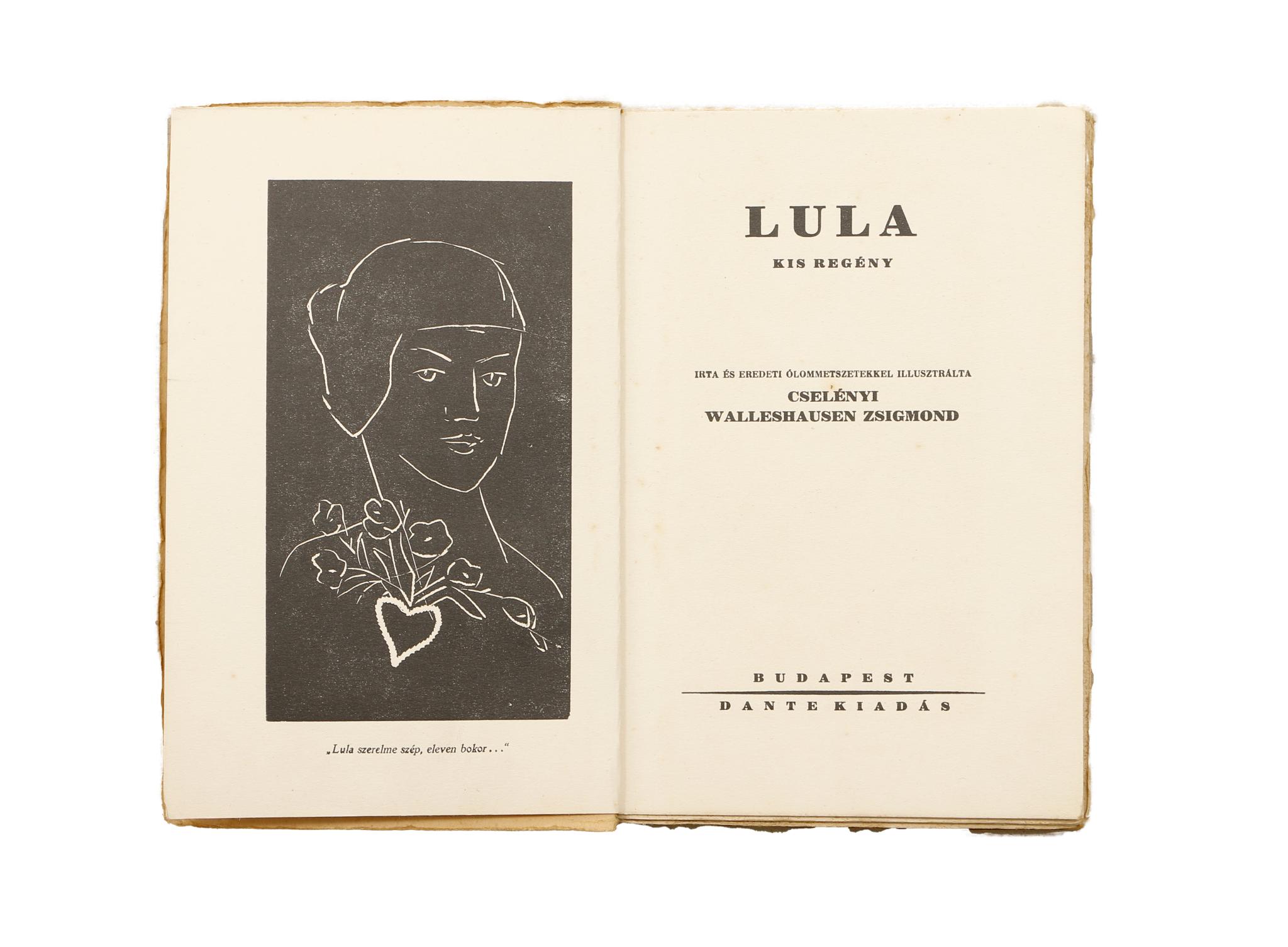Cselényi Walleshausen Zsigmond: Lula. Kis regény. Írta és eredeti ólommetszetekkel illusztrálta: Cselényi Walleshausen Zsigmond.