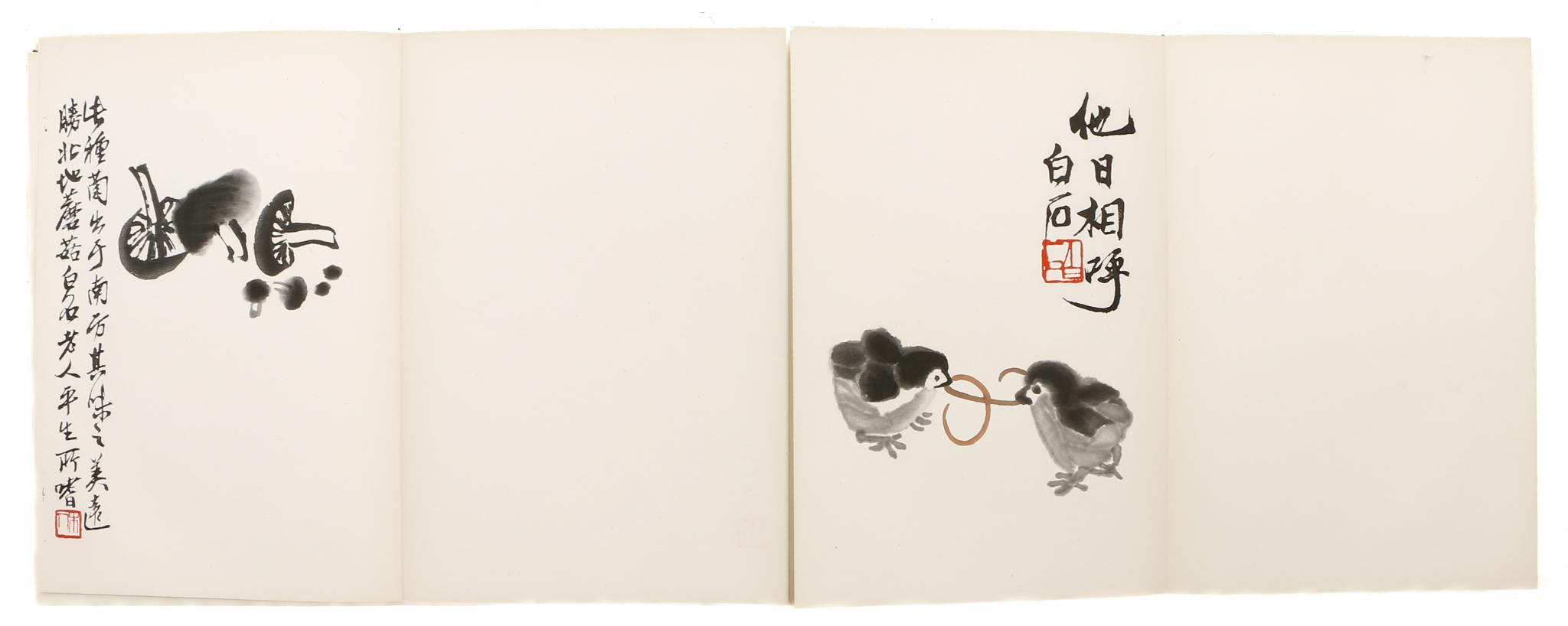 Qi Baishi 22 művét tartalmazó, harmonika-kötésű, páratlanul értékes festmény-albumának első kiadása.