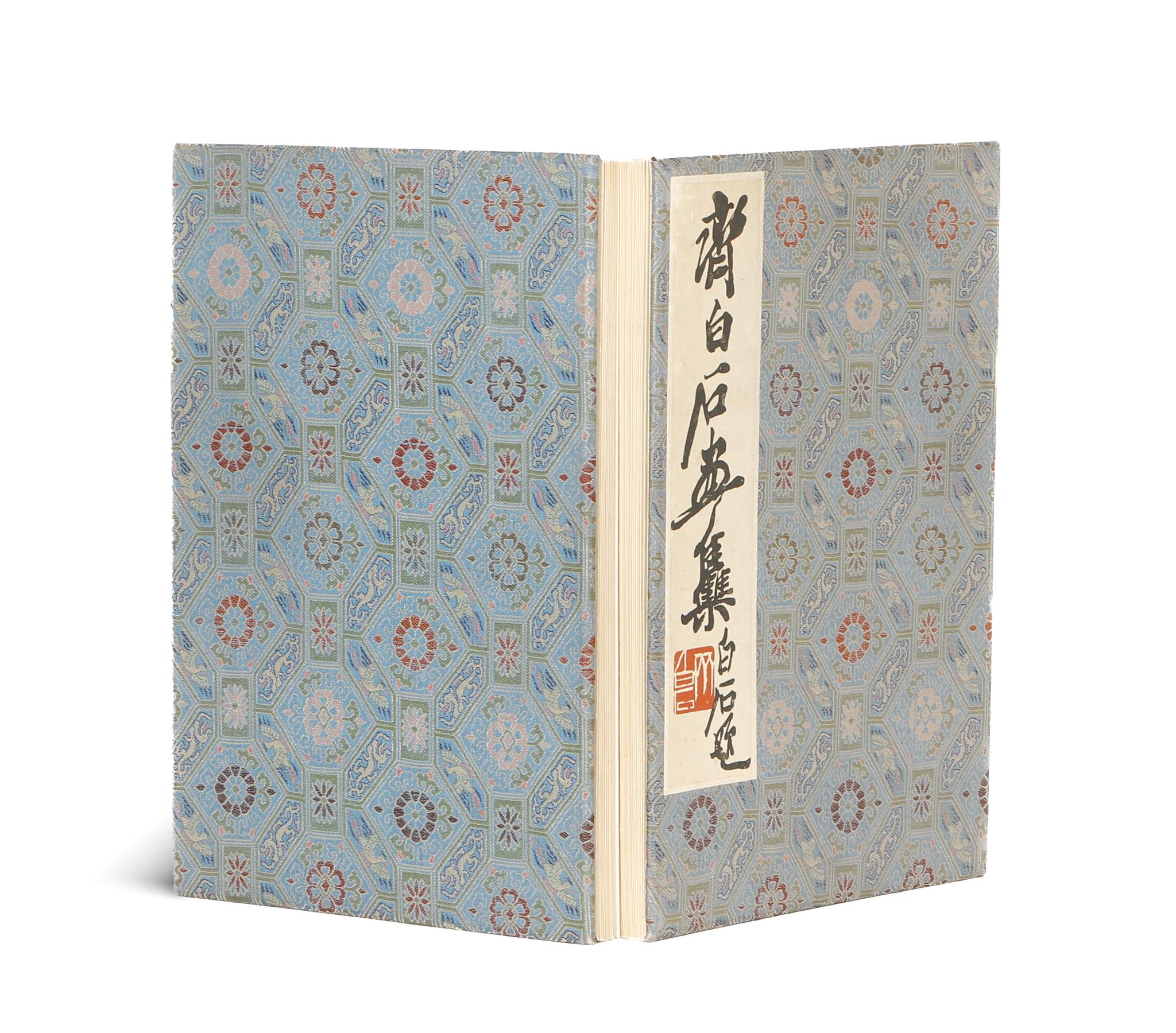 In addition to Qi's genius, the volume also exemplifies the artistic craftsmanship of the famous Rongbaozhai printing press. Founded in 1894 and building on a studio heritage dating back to 1672, Rongbaozhai's publications are known for their decorative silk brocade bindings and their concertina or traditional Chinese xianzhuang style bindings. After the founding of the People's Republic of China in 1949, Rongbaozhai became a state-controlled publishing house and continued to produce limited editions of collector's art publications for a select political and cultural elite. These works were also exported for sale to connoisseurs, book collectors and institutions.