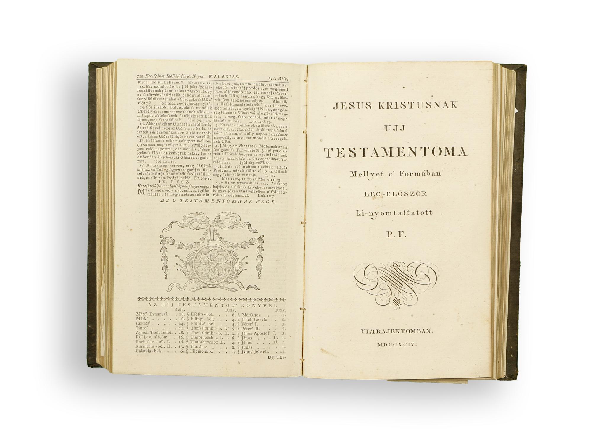 Szent Biblia, az-az Istennek o és ujj Testamentomában foglaltatott egész Szent Írás...Mellyet e’ formában leg-először ki-nyomtattatott P.F. [Patzkó Ferenc]
