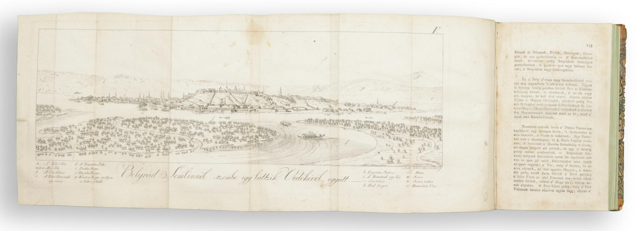 A rézmetszetű mellékletek között Belgrád 17×43 cm-es látképe: metsz. Tzettler, rajzolta Orosházi, valamint 3 térkép: metsz. Berken [János], az egyik színes. A szerző – utazásainak leírásával – először ismertette magyar nyelven a XVIII. század végi Magyarországot. A címlapon Demsitz Ernő festő possessori gumibélyegzője.
