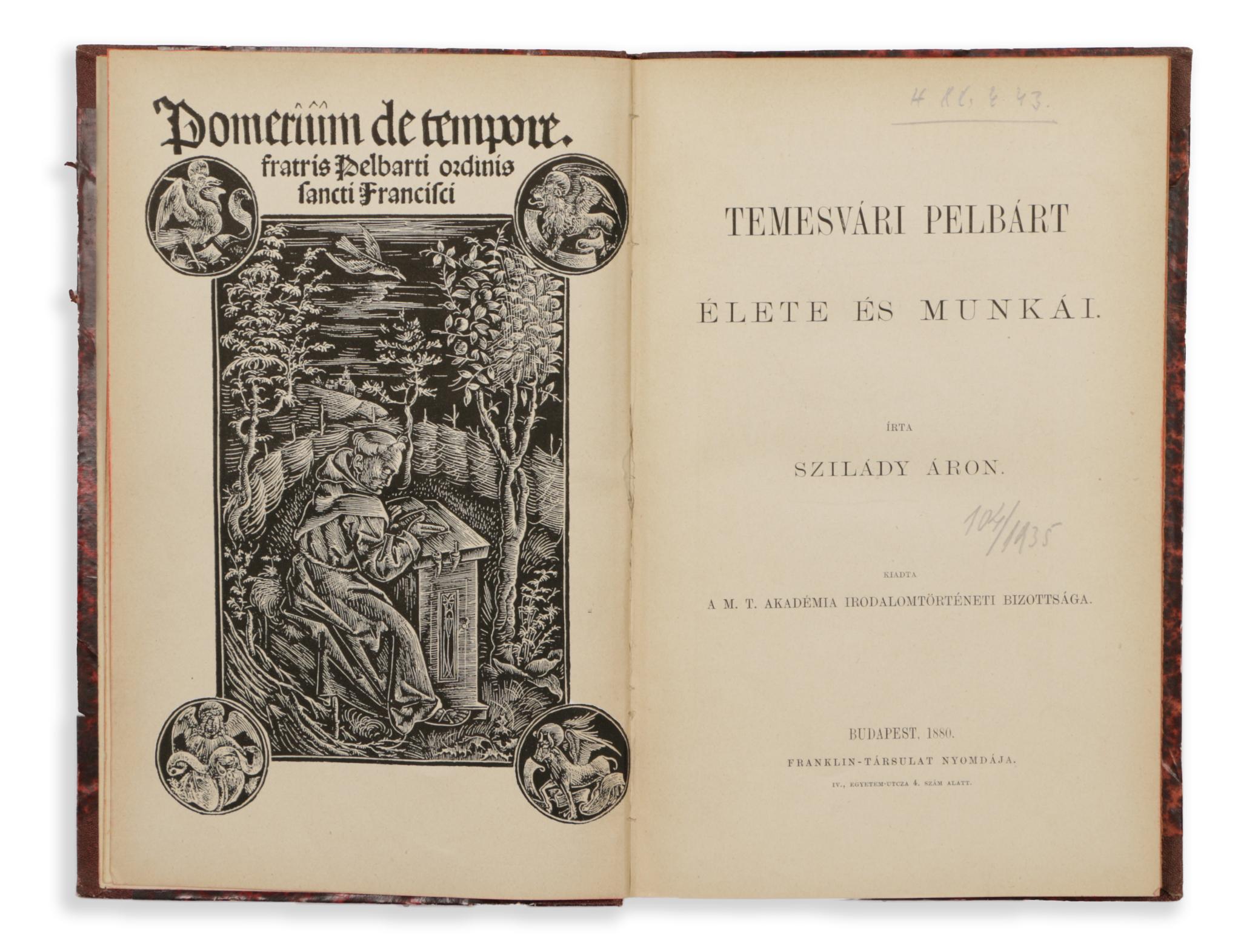 Temesvári Pelbárt élete és munkái. Budapest 1880 M. T. Akadémia Irodalomtörténeti Bizottsága (Franklin-Társulat Nyomdája)