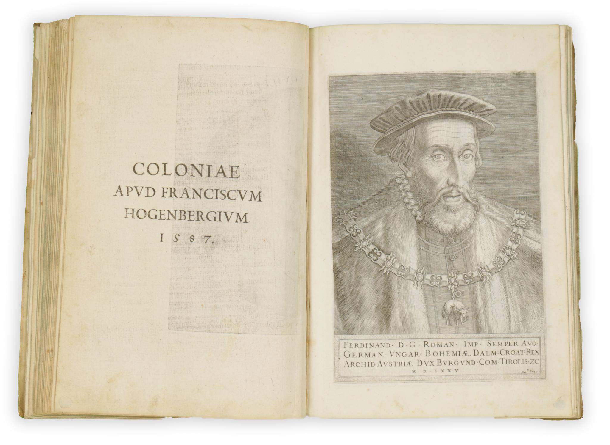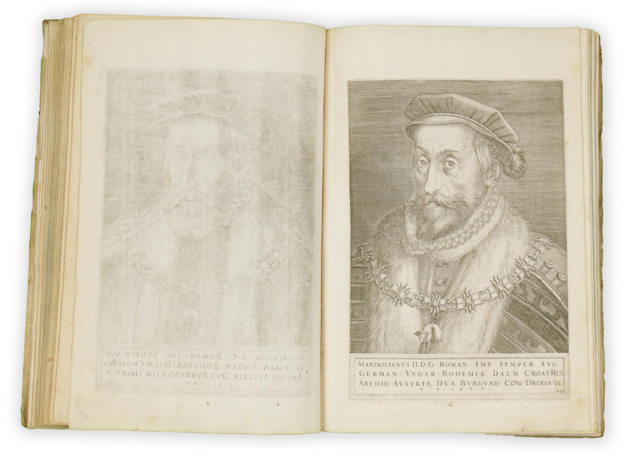Our copy contains only five portraits instead of eight! (Elizabeth, John and Farnese are missing) The two copperplates bound at the end are not included. Martino Rota's portrait of Emperor Ferdinand and Emperor Nicholas II, painted around 1575. They are representative works in their own right.