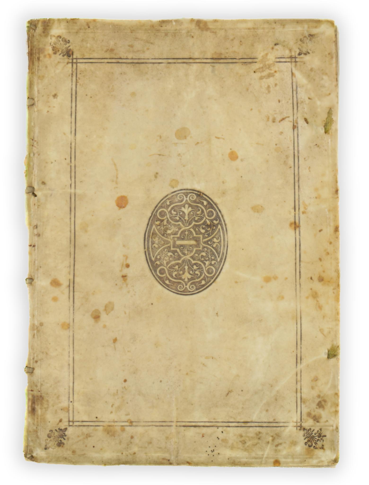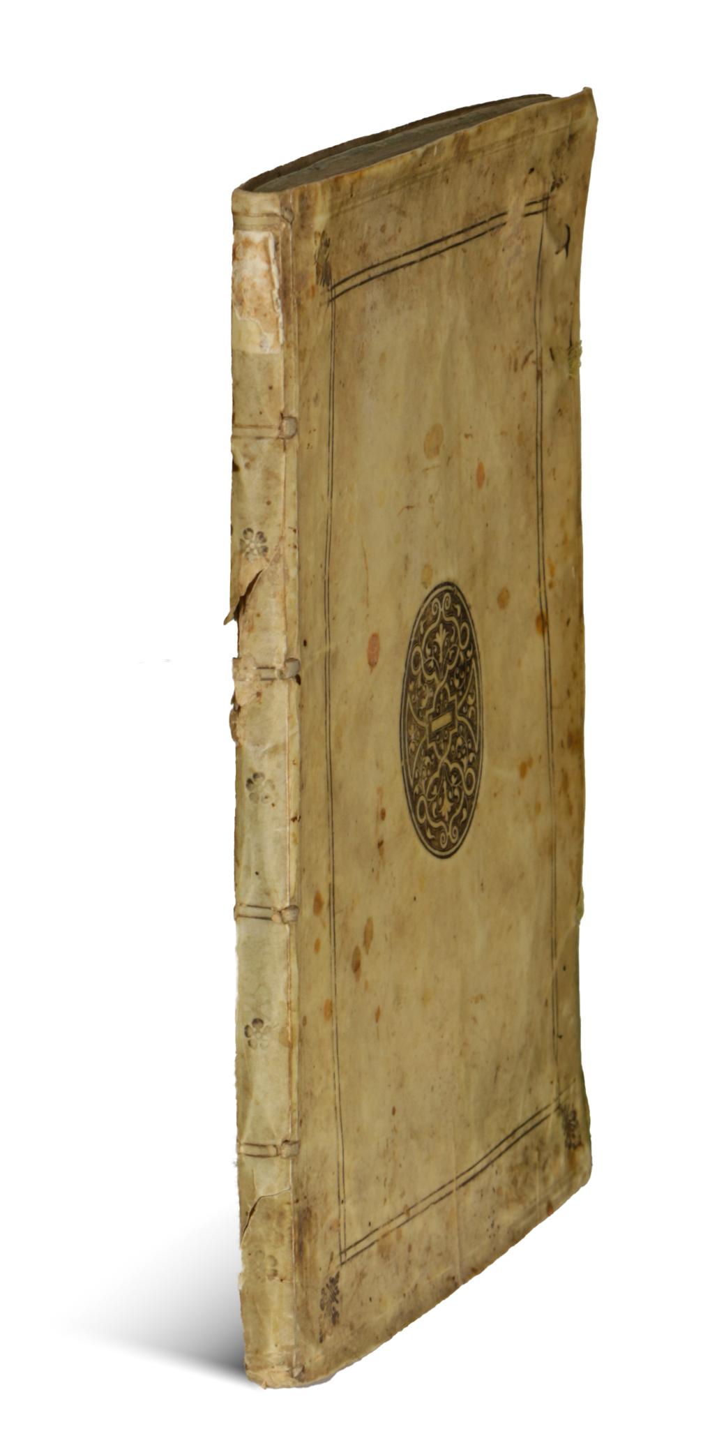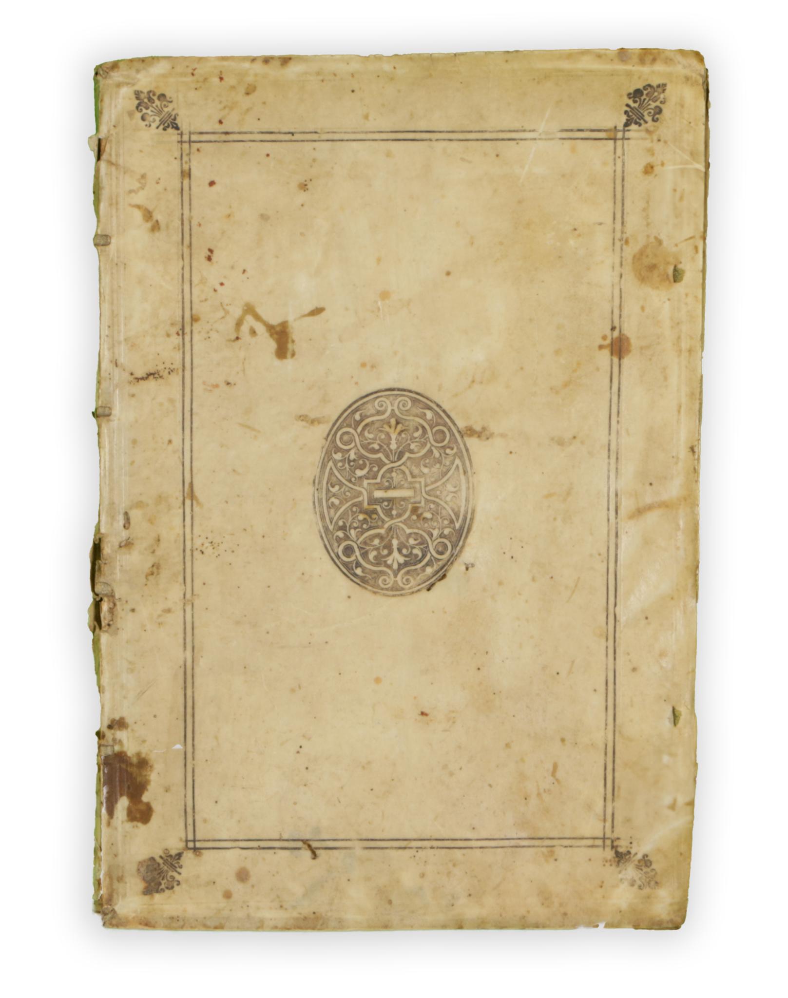 Korabeli juhbőr pergamen, egyenes varrással, négy, a gerincen átfűzött, réselt pánton, valamikor szalagos átkötéssel. A keretdíszes táblán középen ovális arabeszk motívum. Pár levél enyhén foltos, a táblák kissé piszkosak. Hiánya ellenére is rendkívül ritka és szép állapotú mű.