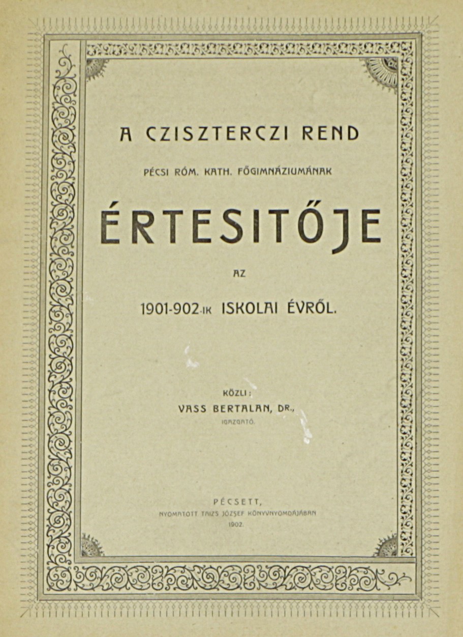 A Cziszterczi Rend Pécsi Róm. Kath. Főgimnázium Értesitője, 1901-1902., 1906-1907., 1907-1908.
