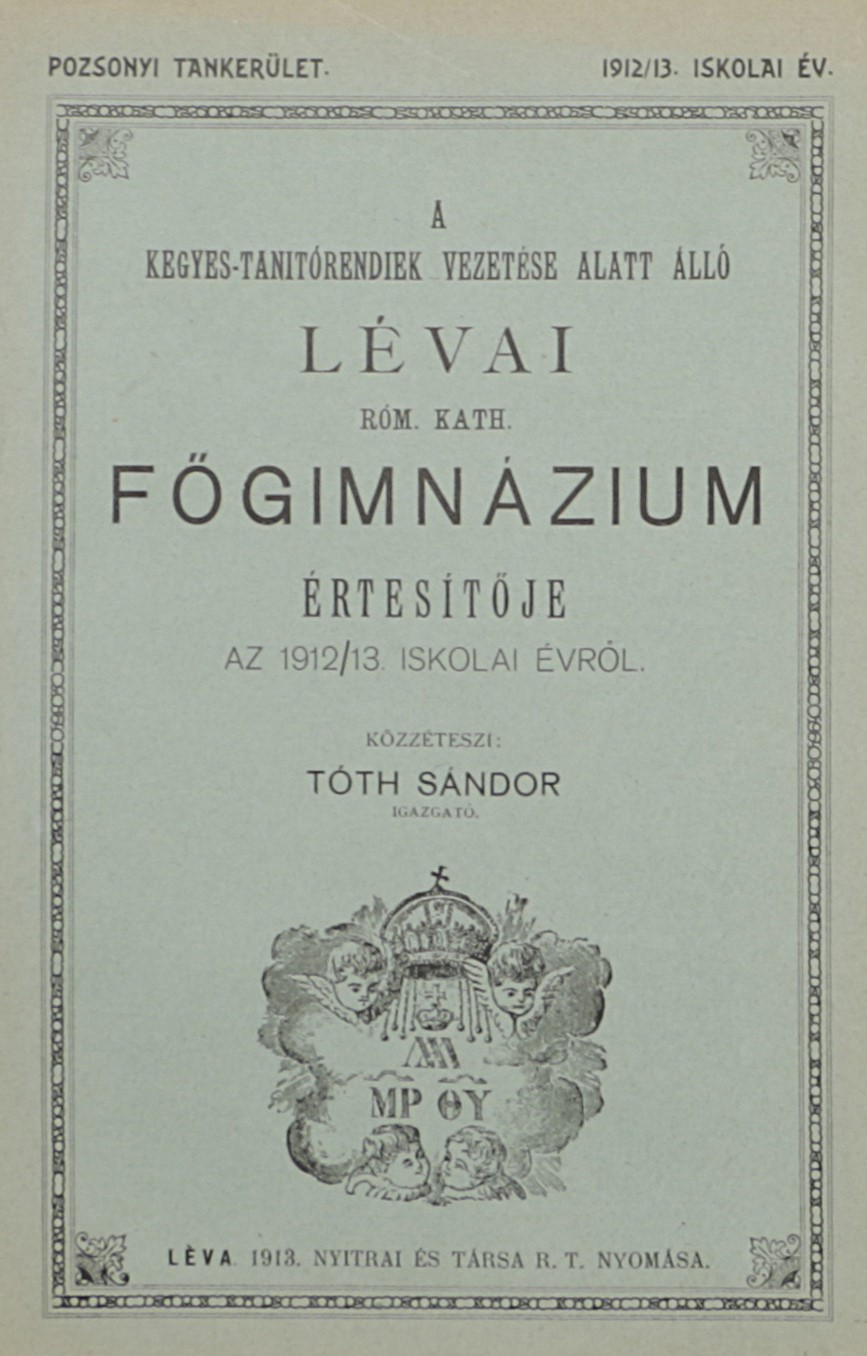 A Kegyes-Tanítórendiek vezetése alatt álló Lévai Róm. Kath. Főgimnázium Értesítője, 1912-13.