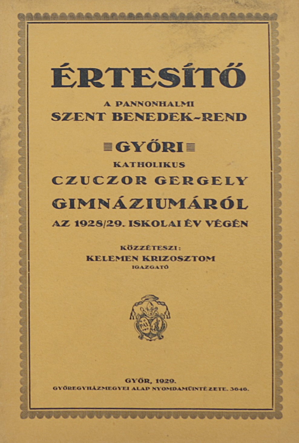 A Pannonhalmi Szent Benedek-Rend Győri Katholikus Czuczor Gergely Gimnázium Értesítője, 1928-29., 1933-34., 1934-35., 1935-36., 1936-37.