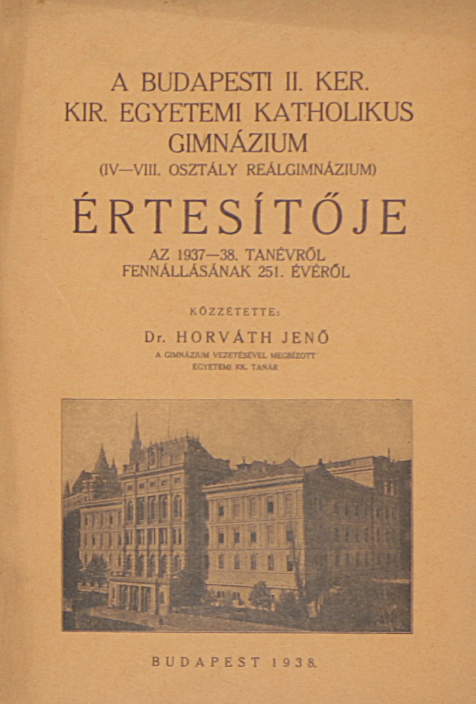 A Budapesti II. ker. Kir. Egyetemi Katholikus Gimnázium Értesítője, 1937-38.