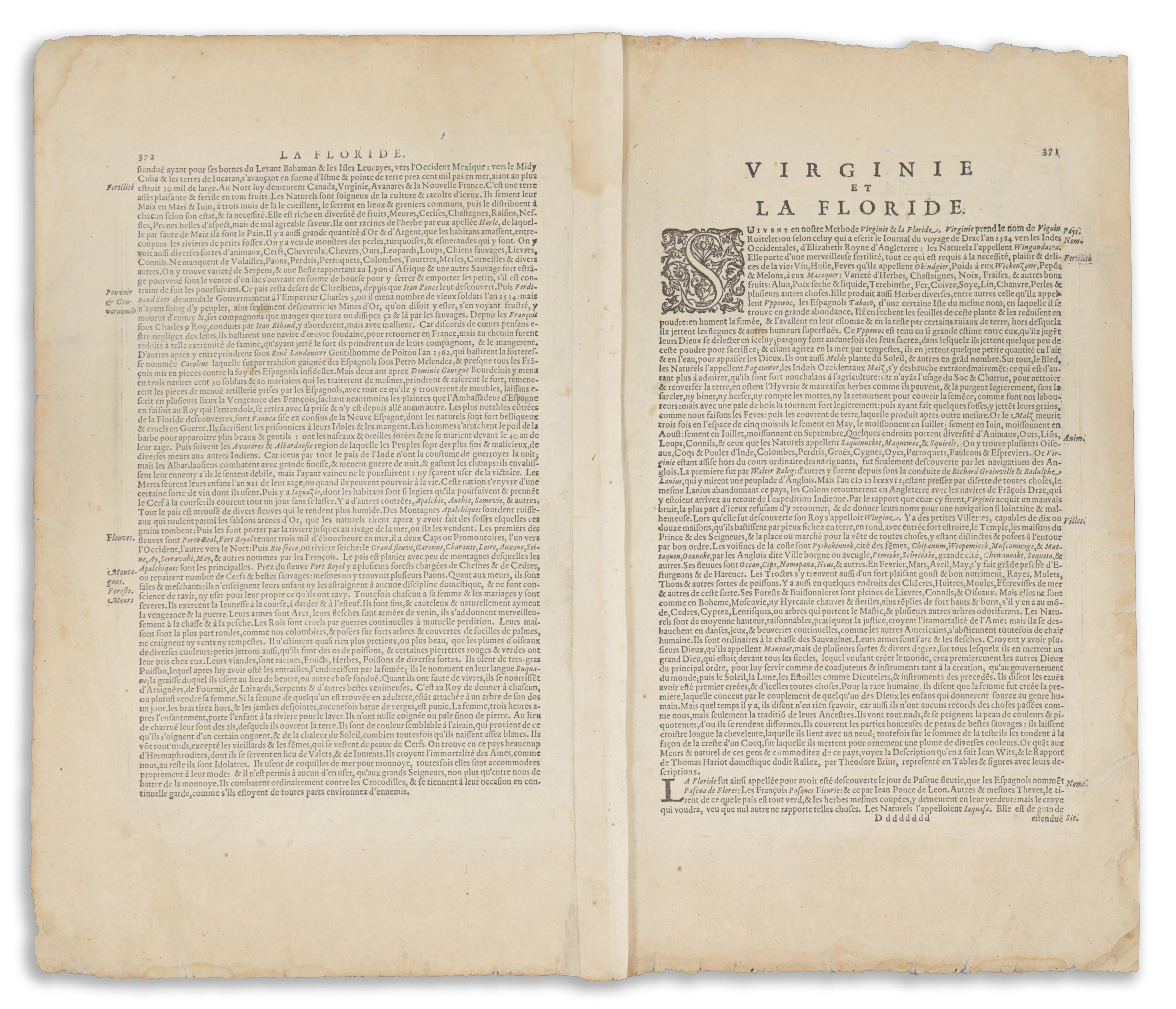 Verso Text: Pages 371, 372, Dddddddd. Virginae et La Floride. French description.