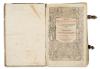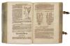 In a contemporary vellum binding. The plates are decorated with blind-printed flowers, plants and geometric shapes. Spine with borders. With original buckles. Slightly worn but an exceptionally rare copy in a beautiful original binding.