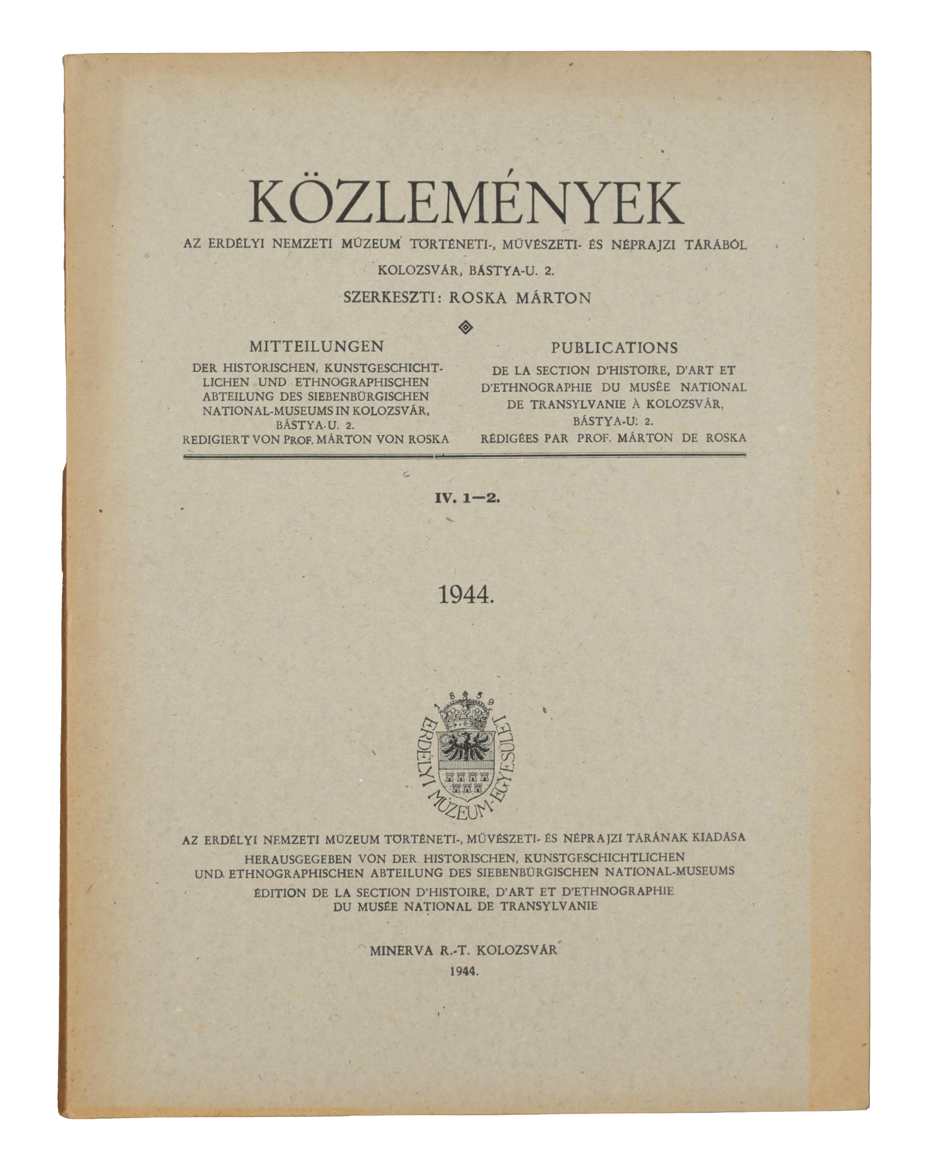 Szerkeszti: Roska Márton. Kolozsvár, 1944. Erdélyi Nemzeti Múzeum Érem- és Régiségtára (Minerva Rt. [ny.])
