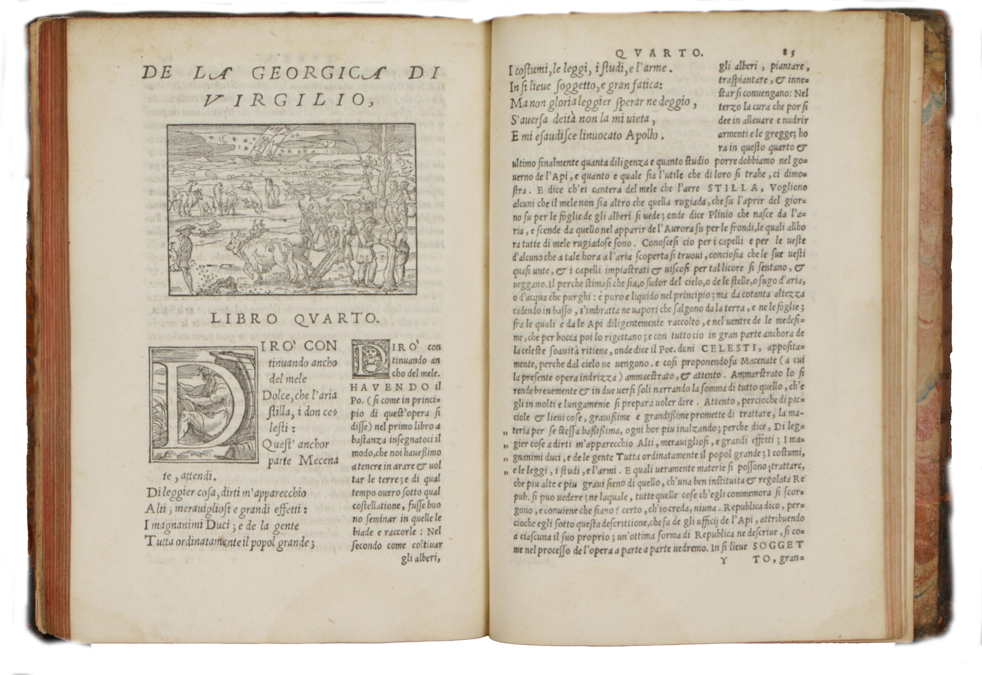 Bernardo Daniello (Lucca, 16. század - Padova, 1565) ritka Vergilius-fordítása. Giovanni Gryphio híres nyomdájából. A mű még Daniello életében jelent meg, és Vergilius négy művének fordítását tartalmazza. Gryphio Velence egyik legkiválóbb nyomdásza volt, és csak a legfinomabb papírt használta. Historizáló iniciálékkal, négy fejezetkezdő metszettel.