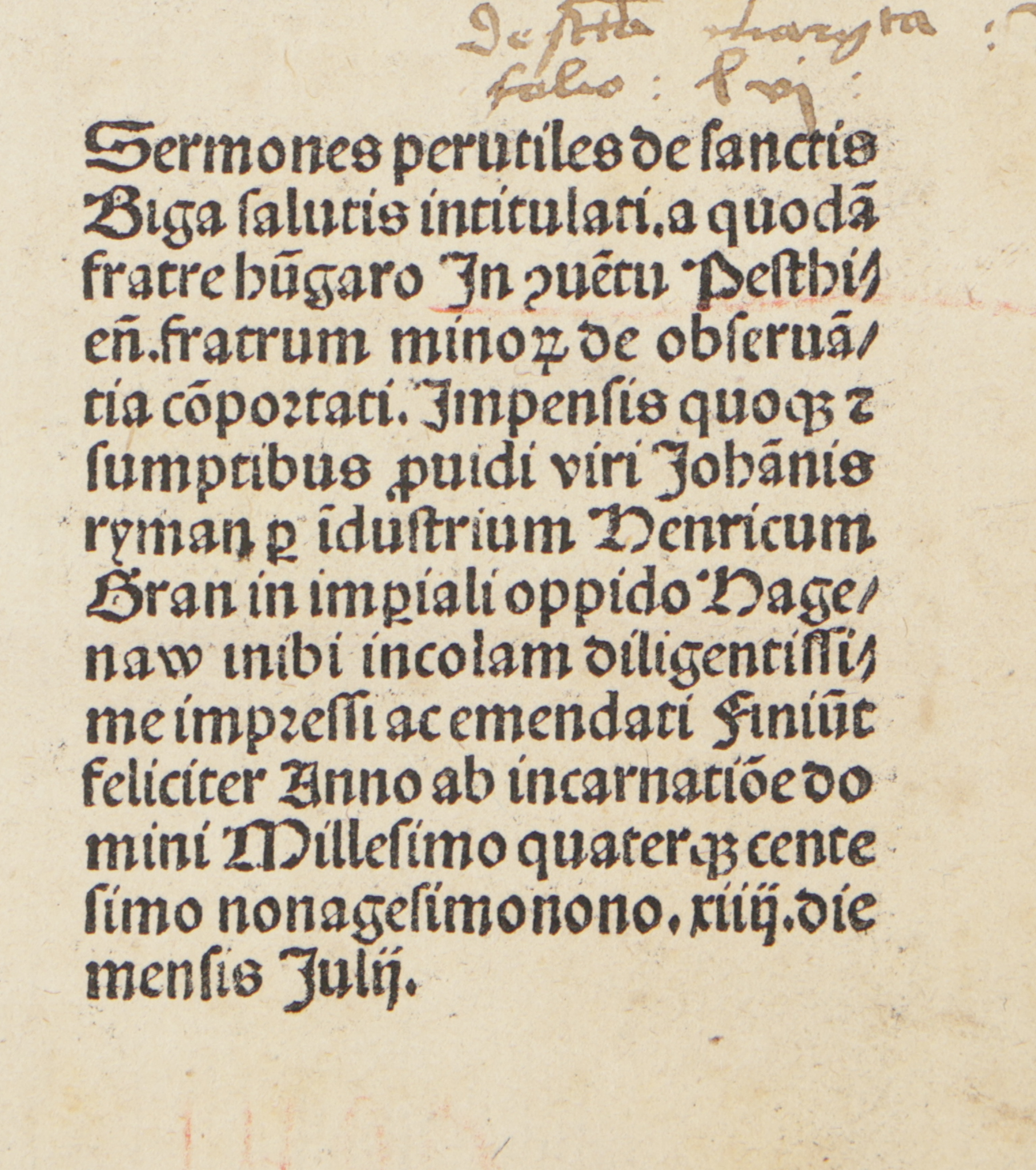 Hagenau [Augsburg], 1499.VII.14. Heinrich Gran, pro Johanne Rynman. 348 p.