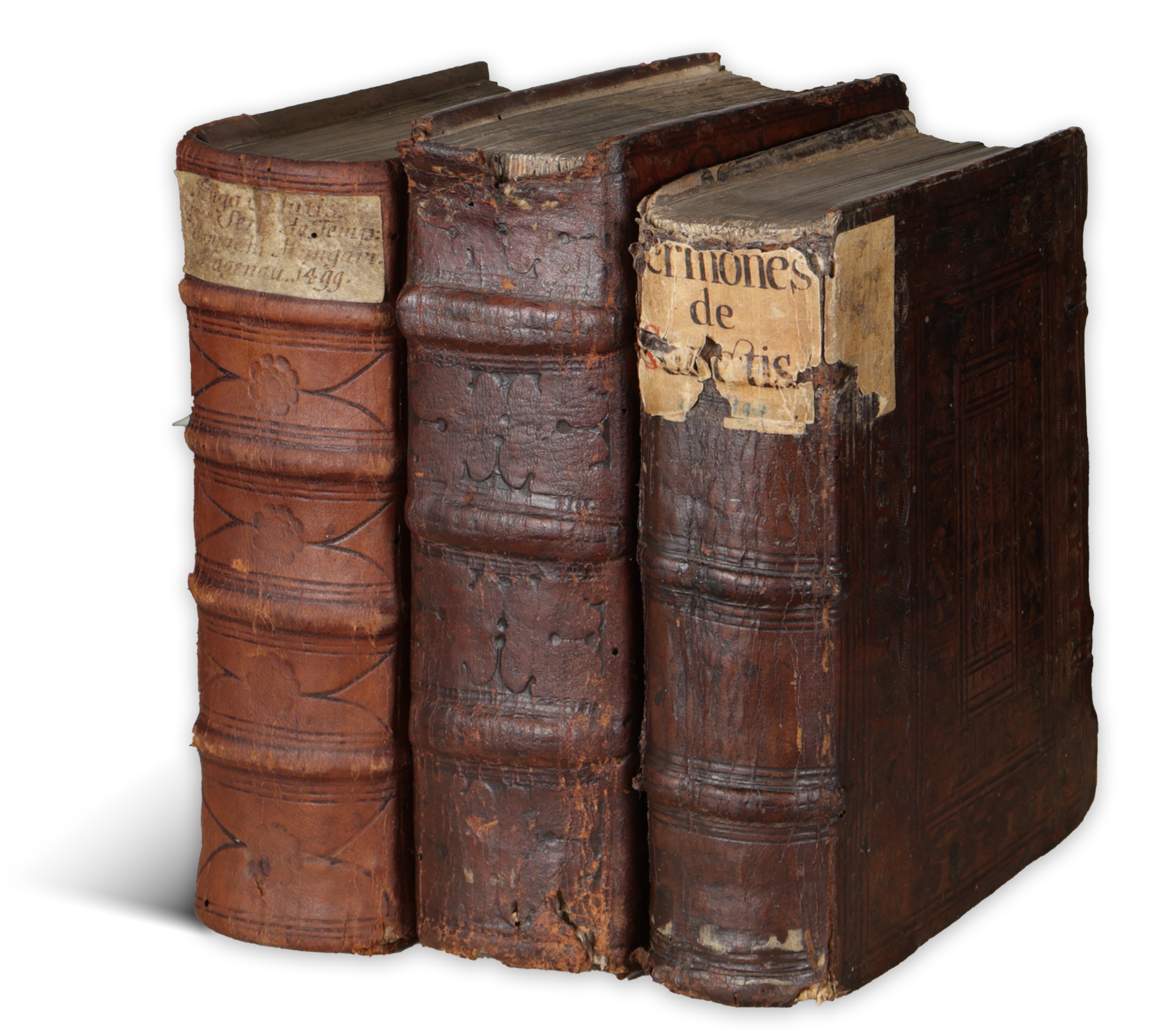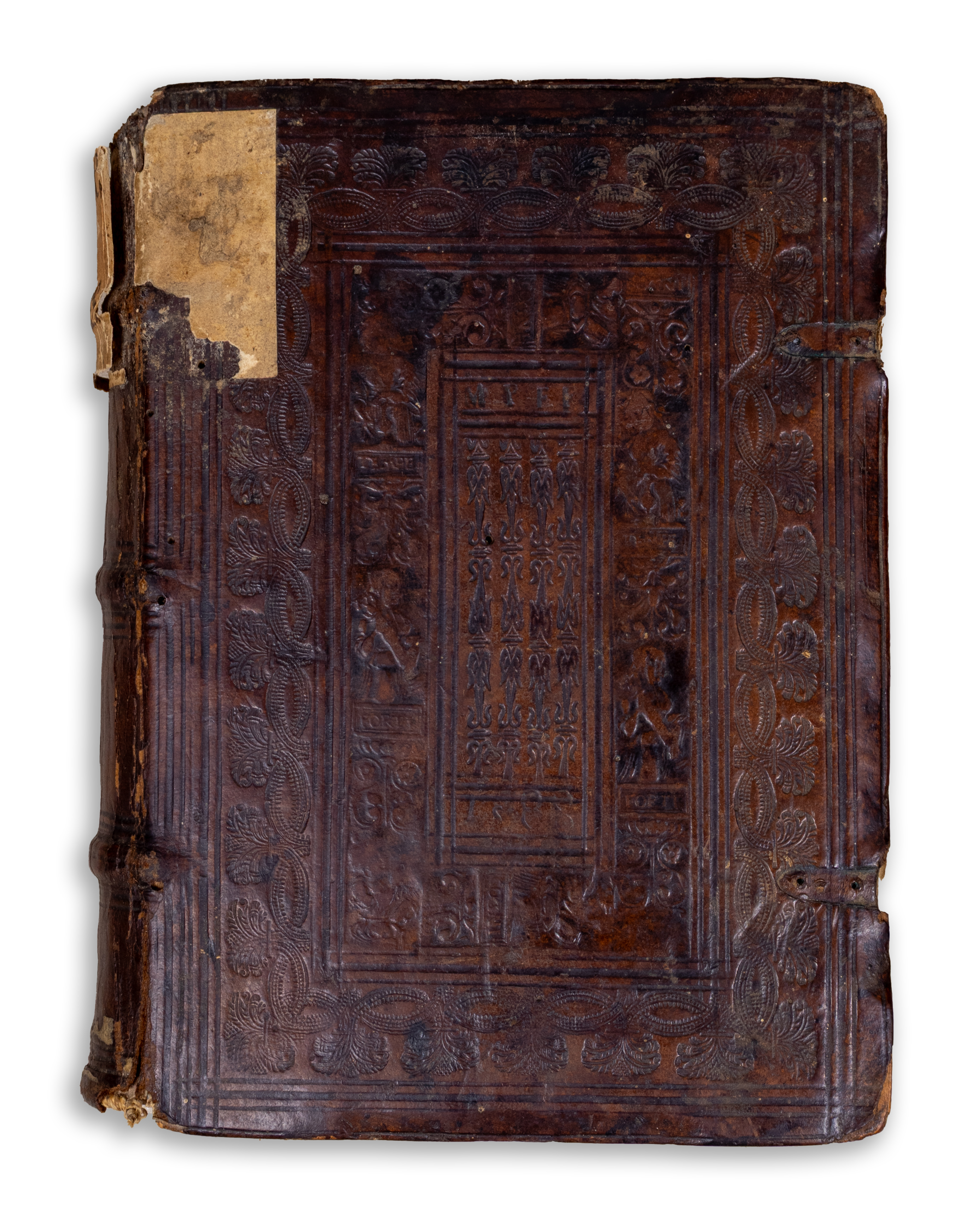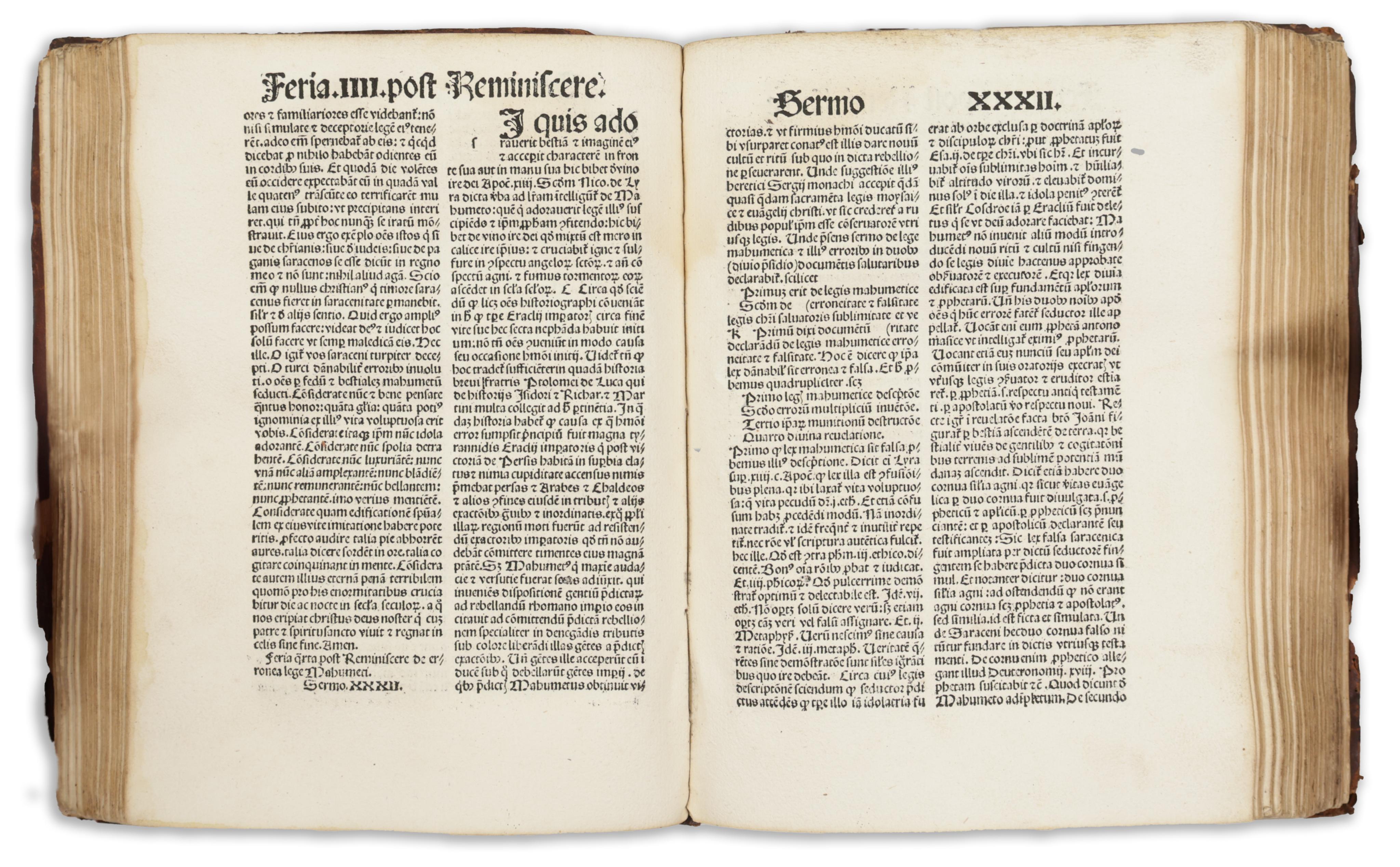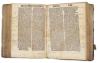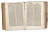Második kiadás. Vörös inciálékkal díszitett. Későbbi félbőr-kötésben, fatáblákkal. Bordázott, vaknyomással díszitett gerinc, címvignettával. Az első három levél közepén kisebb lyuk, némi szövegveszteséggel. Korabeli bejegyzésekkel. Különben szép, tiszta példány.