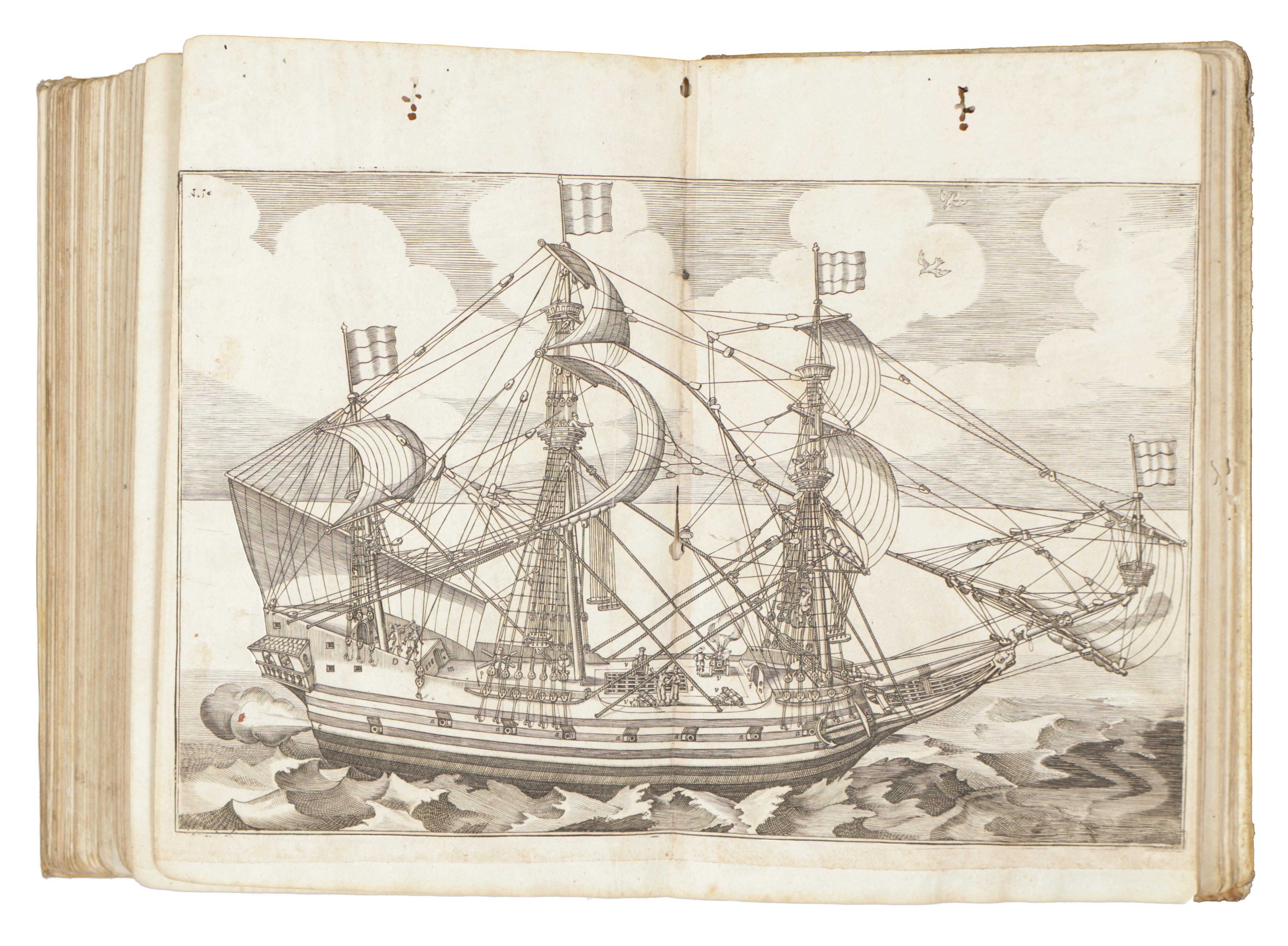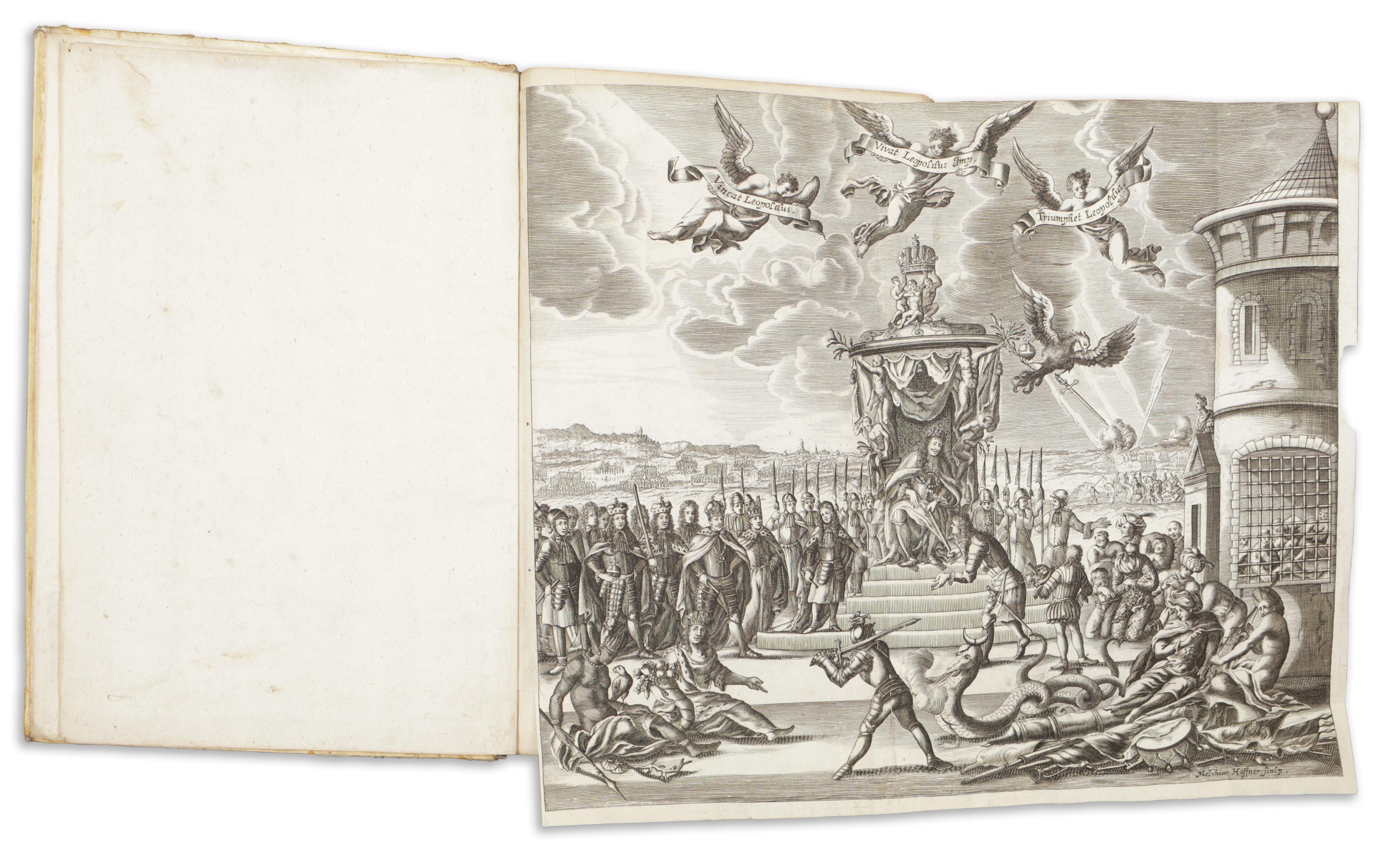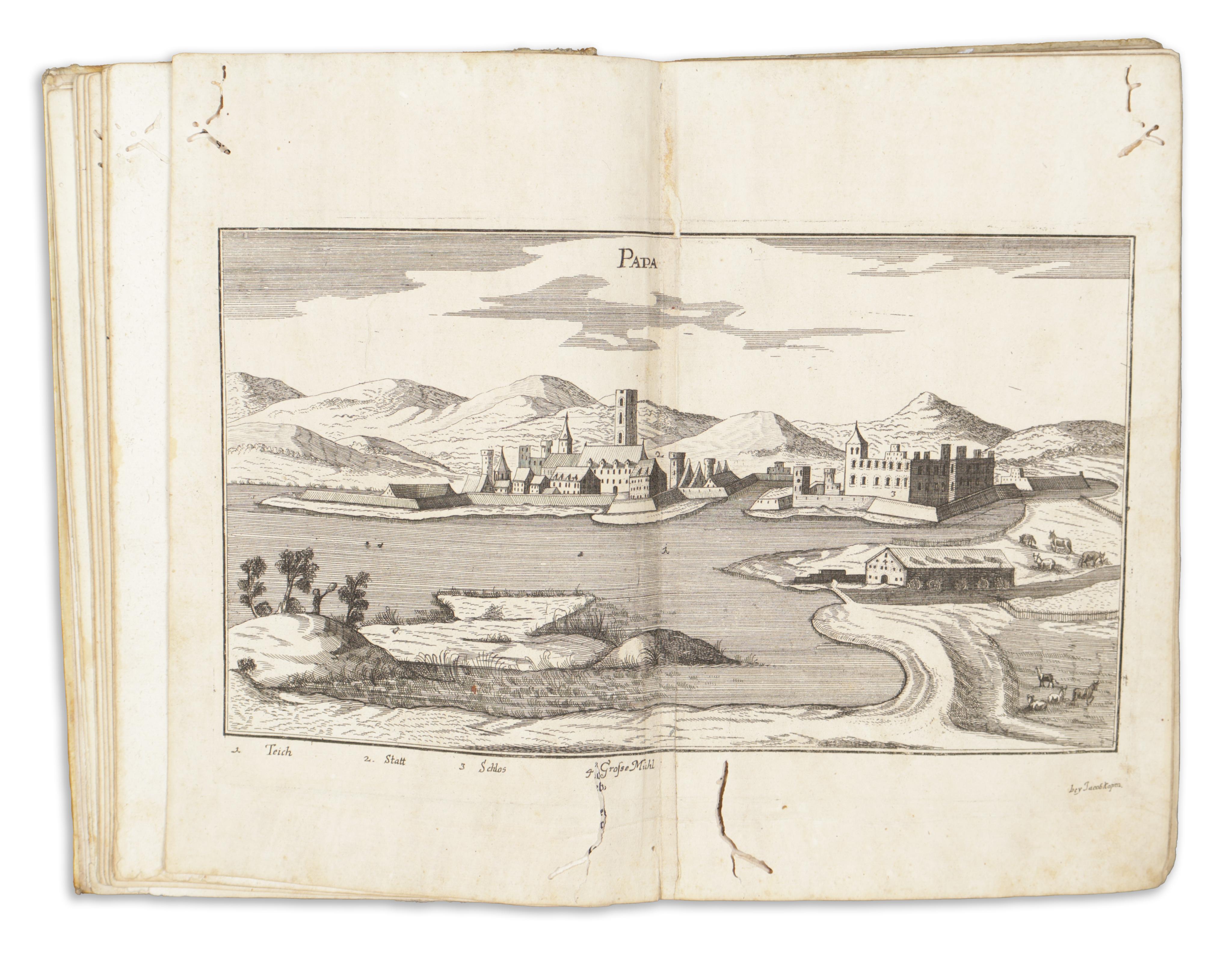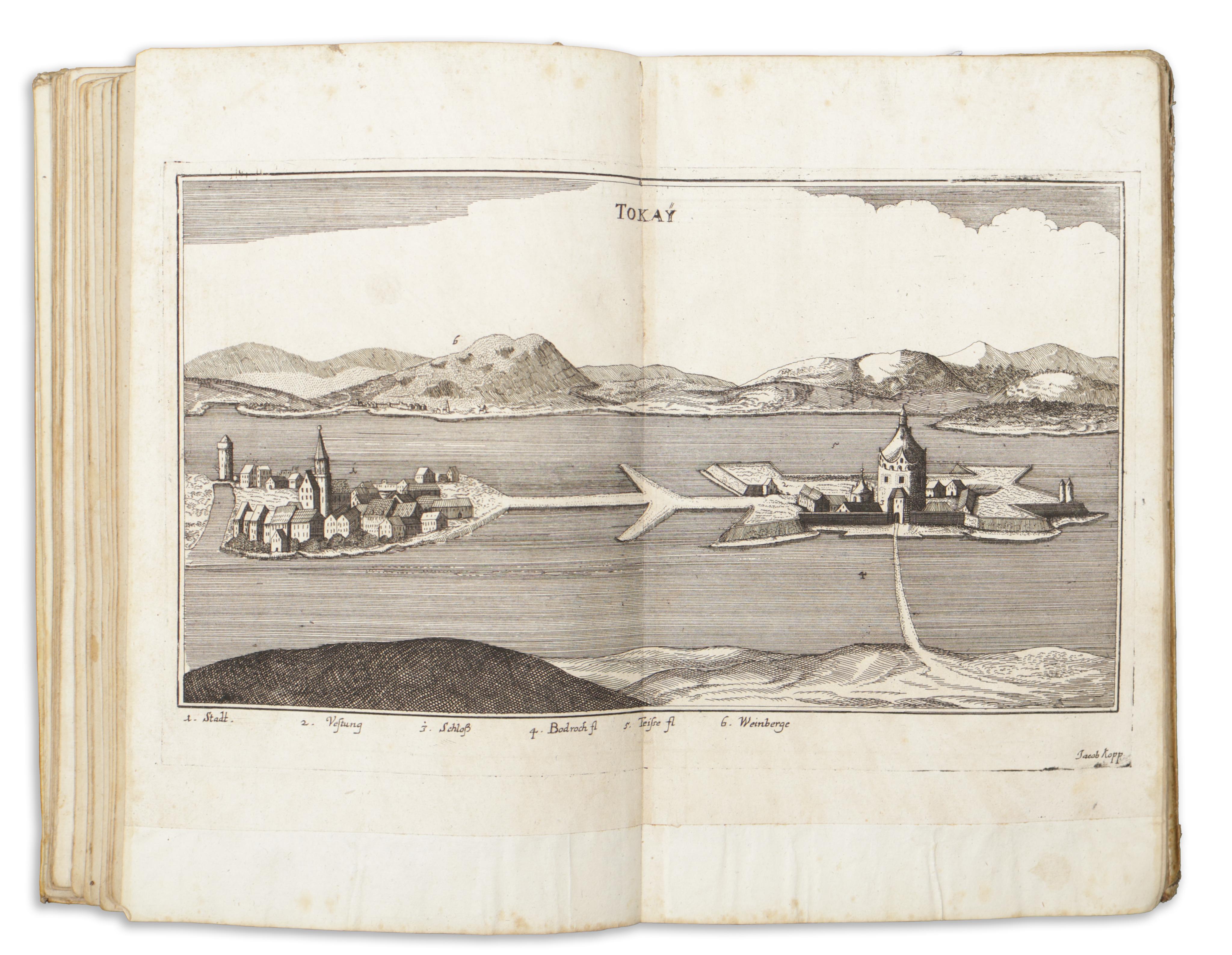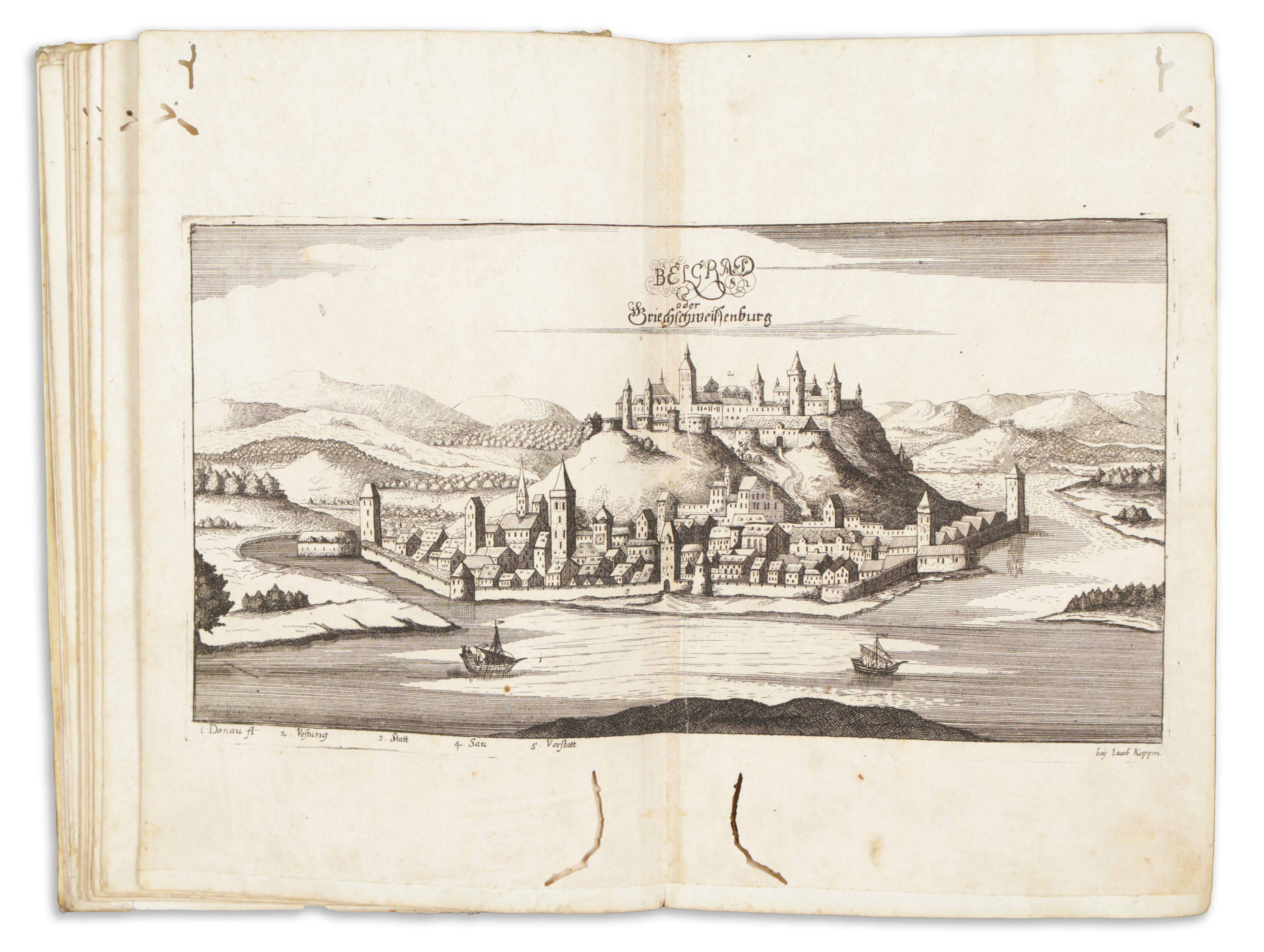 Augsburg, 1684. Jacob Koppmayer. 1 t. (kihajtható címképmetszet) + [8] + 162 + [8] p. + 41 t. (rézmetszet, ebből 32 dupla oldalas) + 2 térkép (rézmetszet). Folio. Első kiadás.