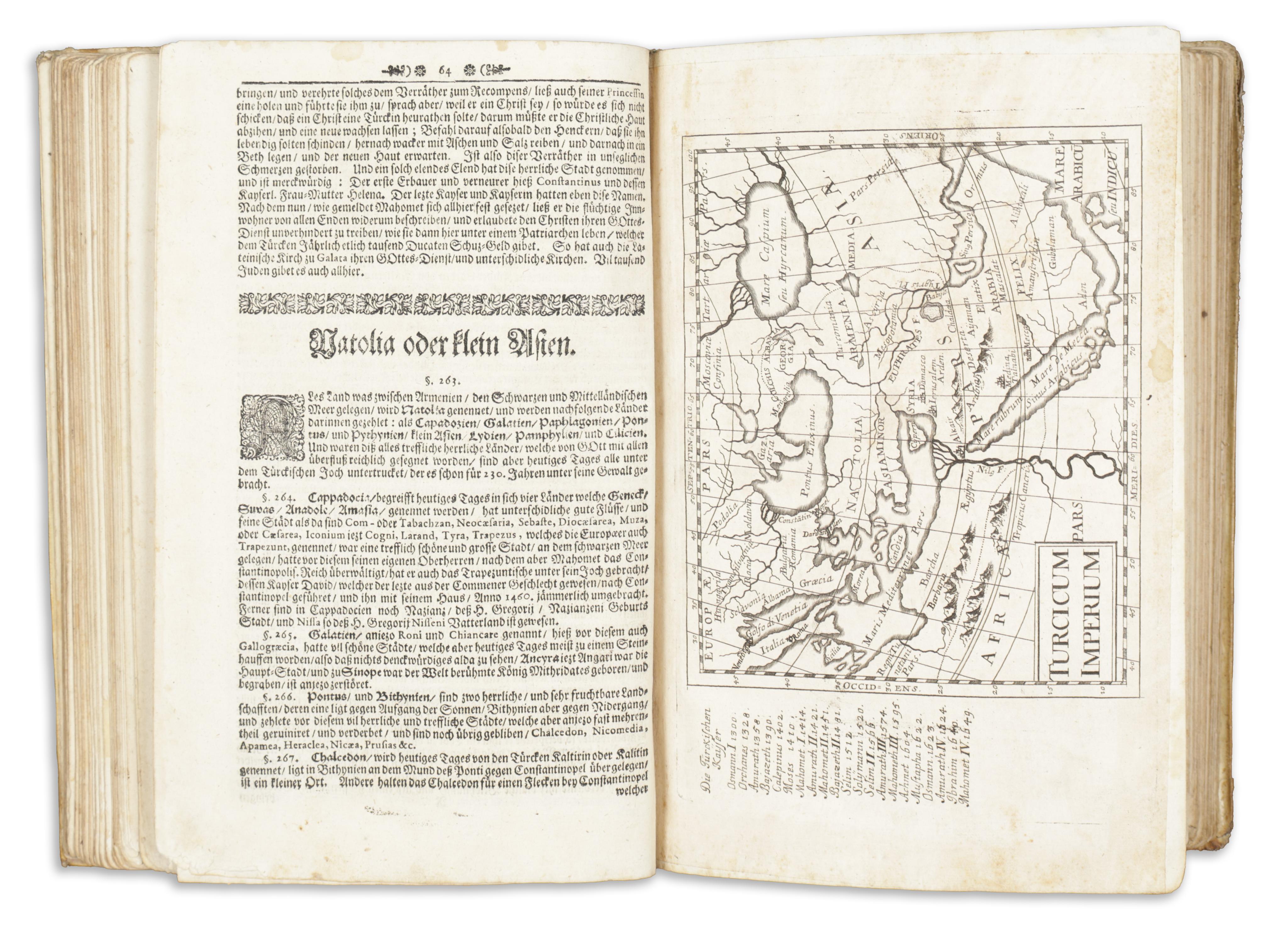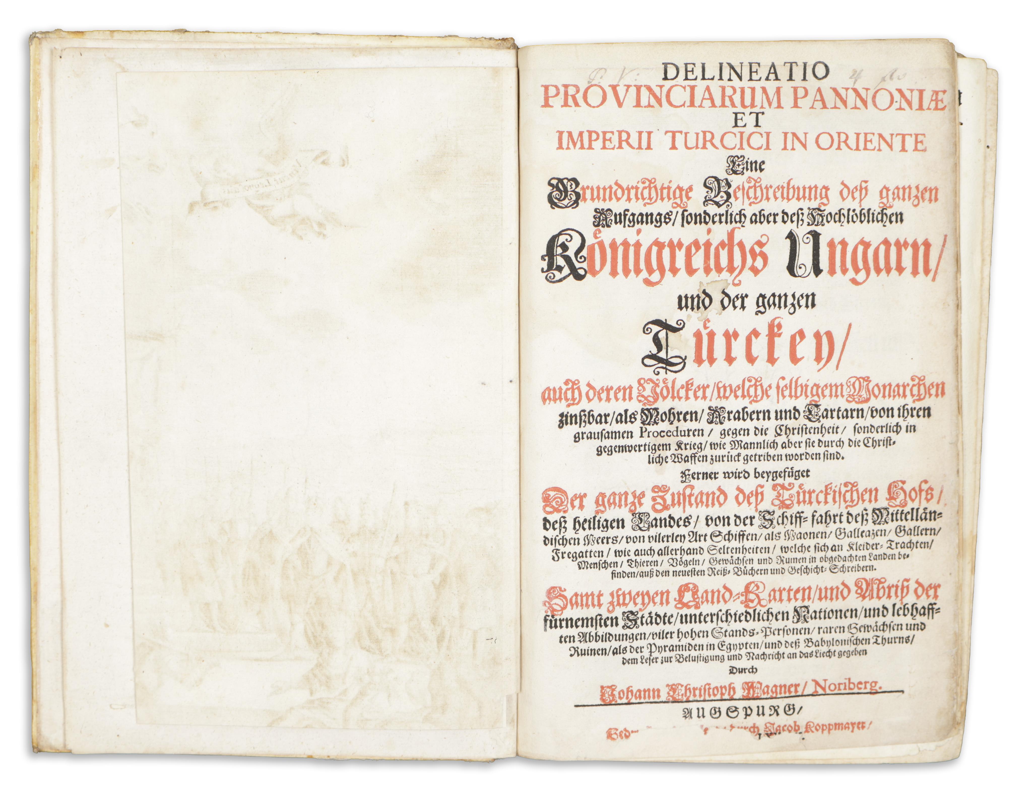 Eine Grundrichtige Beschreibung dess ganzen Aufgangs, sonderlich aber dess Hochlöblichen Königreichs Ungarn, und der ganzen Türckey, auch deren Völcker, welche selbigem Monarchen zinssbar, als Mohren, Arabern und Tartarn, von ihren grausamen Proceduren, gegen die Christenheit [...] Ferner wird beygefüget Der ganze Zustand dess Türckischen Hofs, dess heiligen Landes, von der Schiff-fahrt dess Mittelländischen Meers [...] wie auch allerhand Seltenheiten [...] Samt zweyen Land-Karten, und Abriss der fürnemsten Städte, unterschiedlichen Nationen [...]