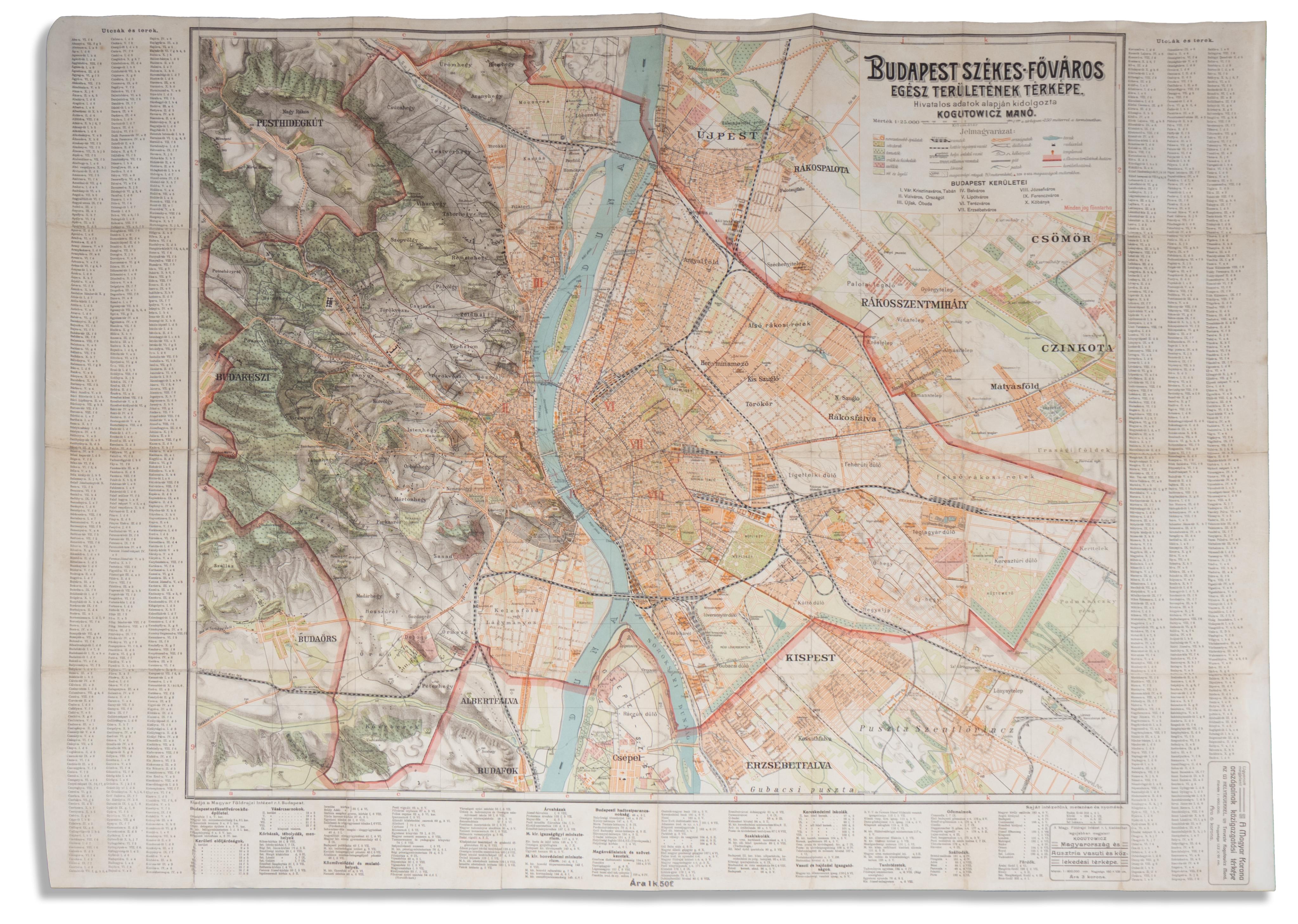 Budapest székesfőváros egész területének térképe