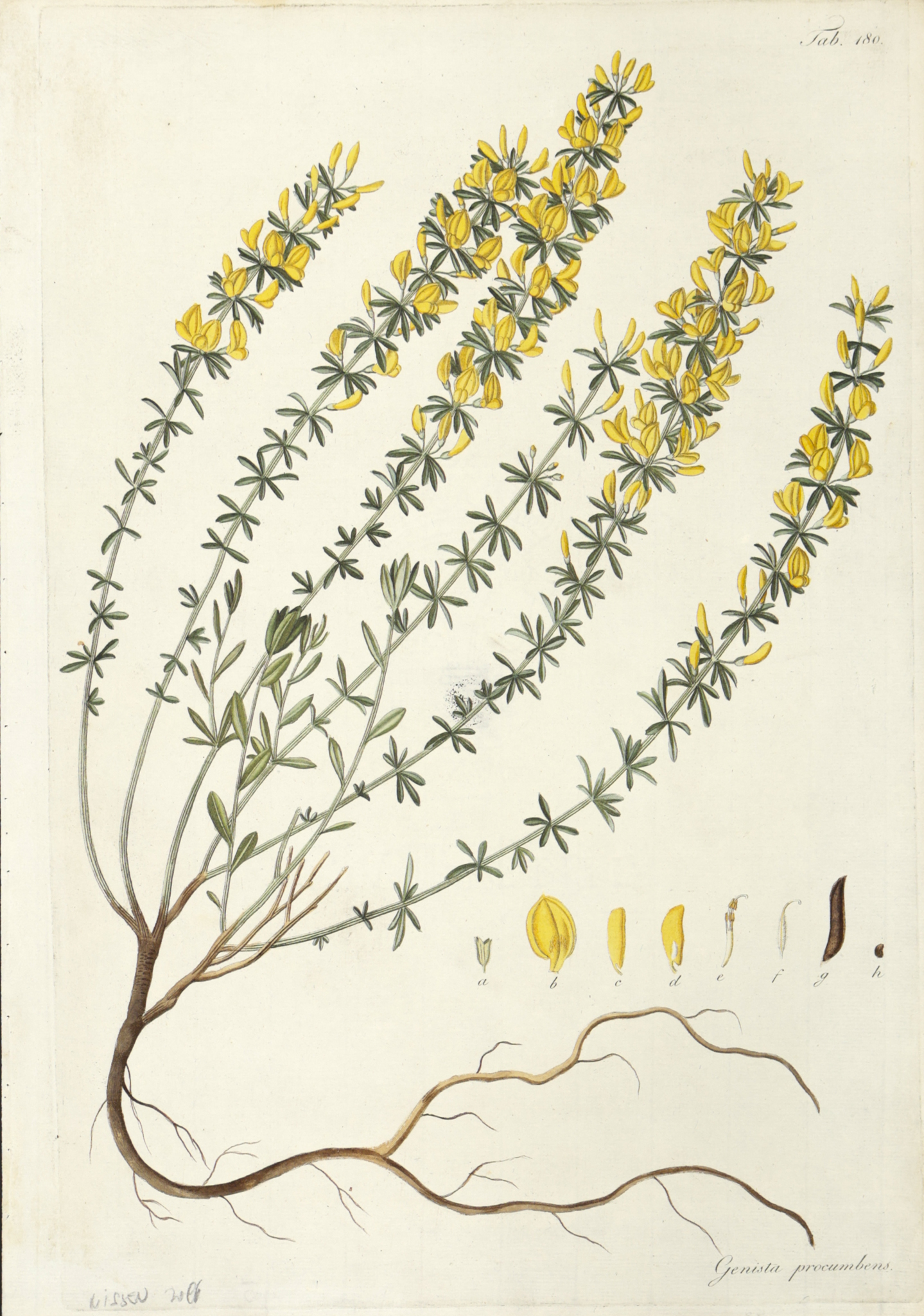 genista procumbens - kúszó zanót [színezett rézmetszet]