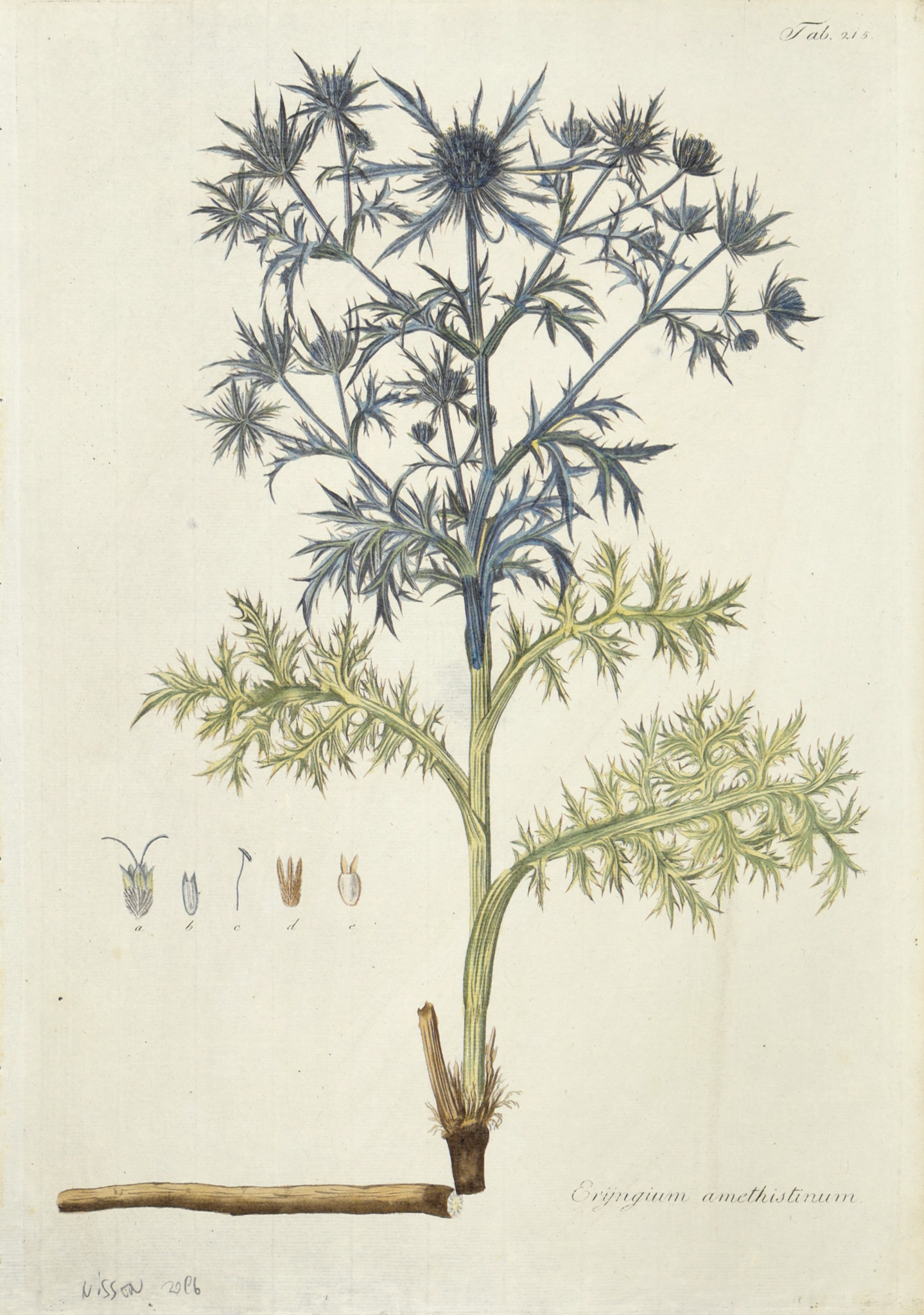 eryngium amethistinum - havasi iringó [színezett rézmetszet]