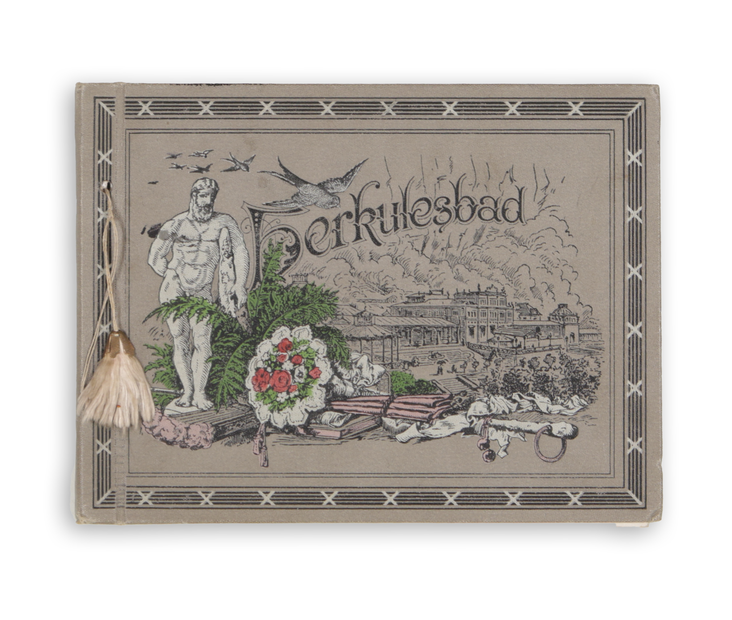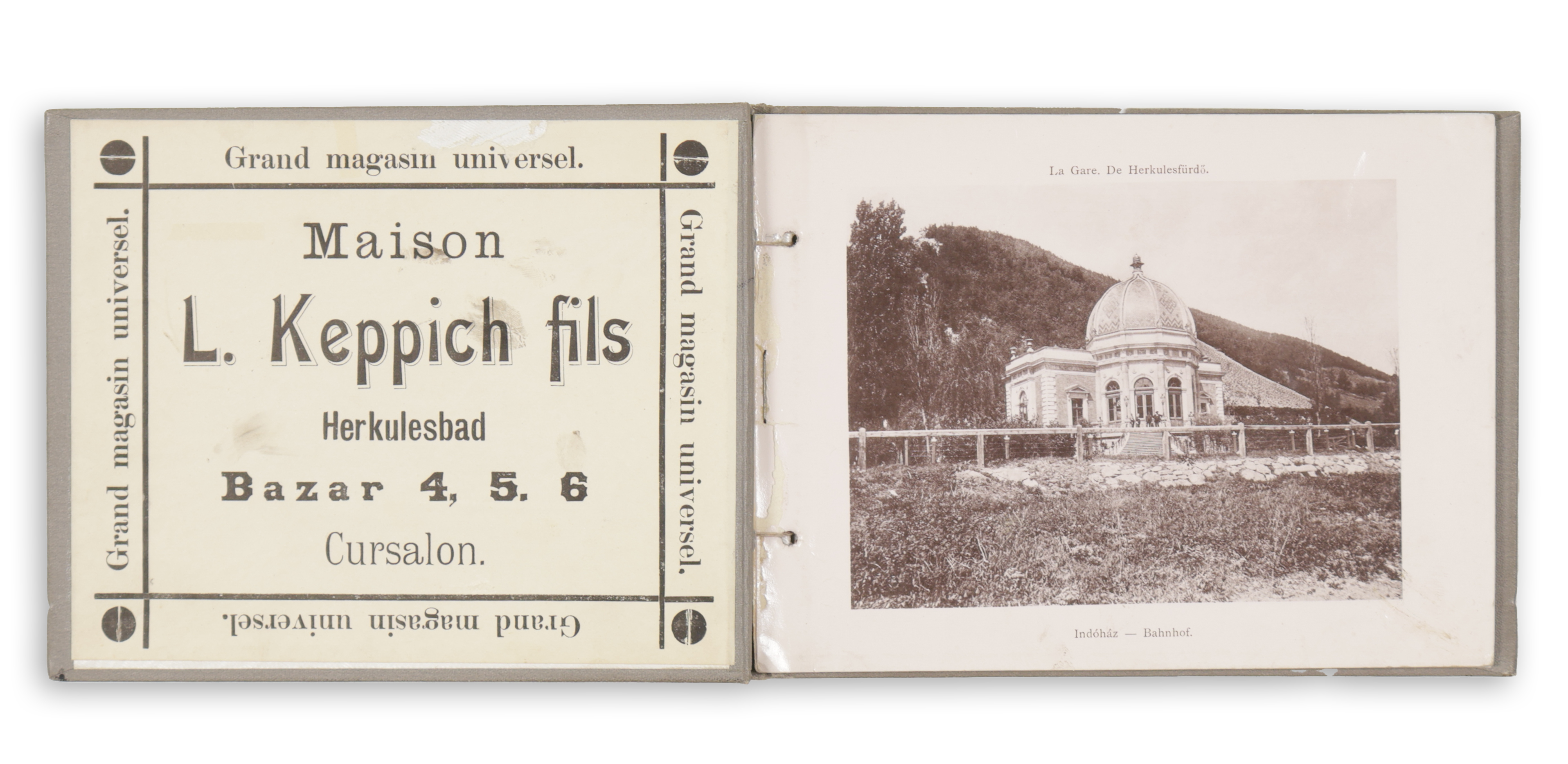12 photos in a leporello. On the verso of the front cover, and at the end of the volume, an advertisement for store of L. Keppich and Son. In French, Hungarian, and German.