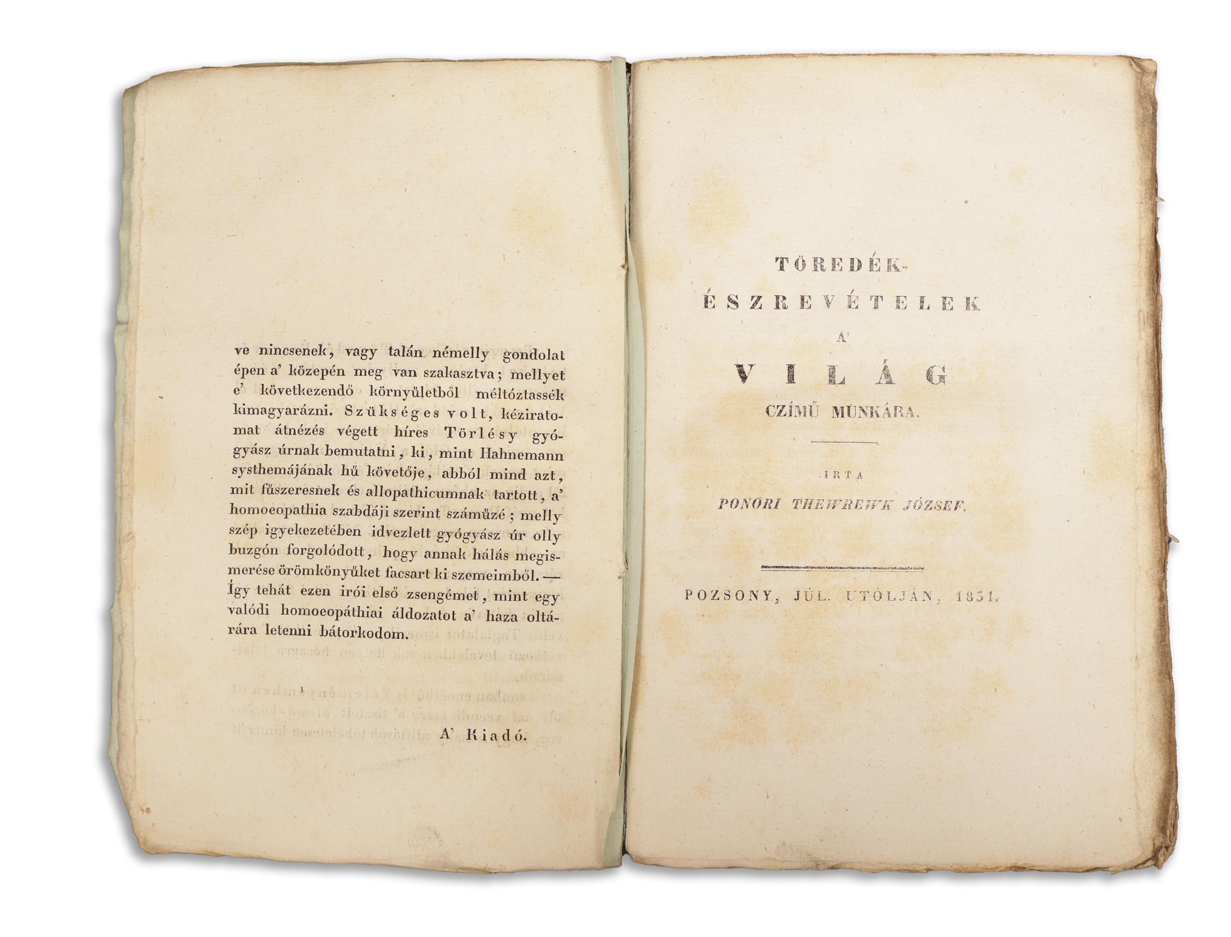 Ponori Thewrewk József: Töredék-észrevételek a Világ czímű munkára.