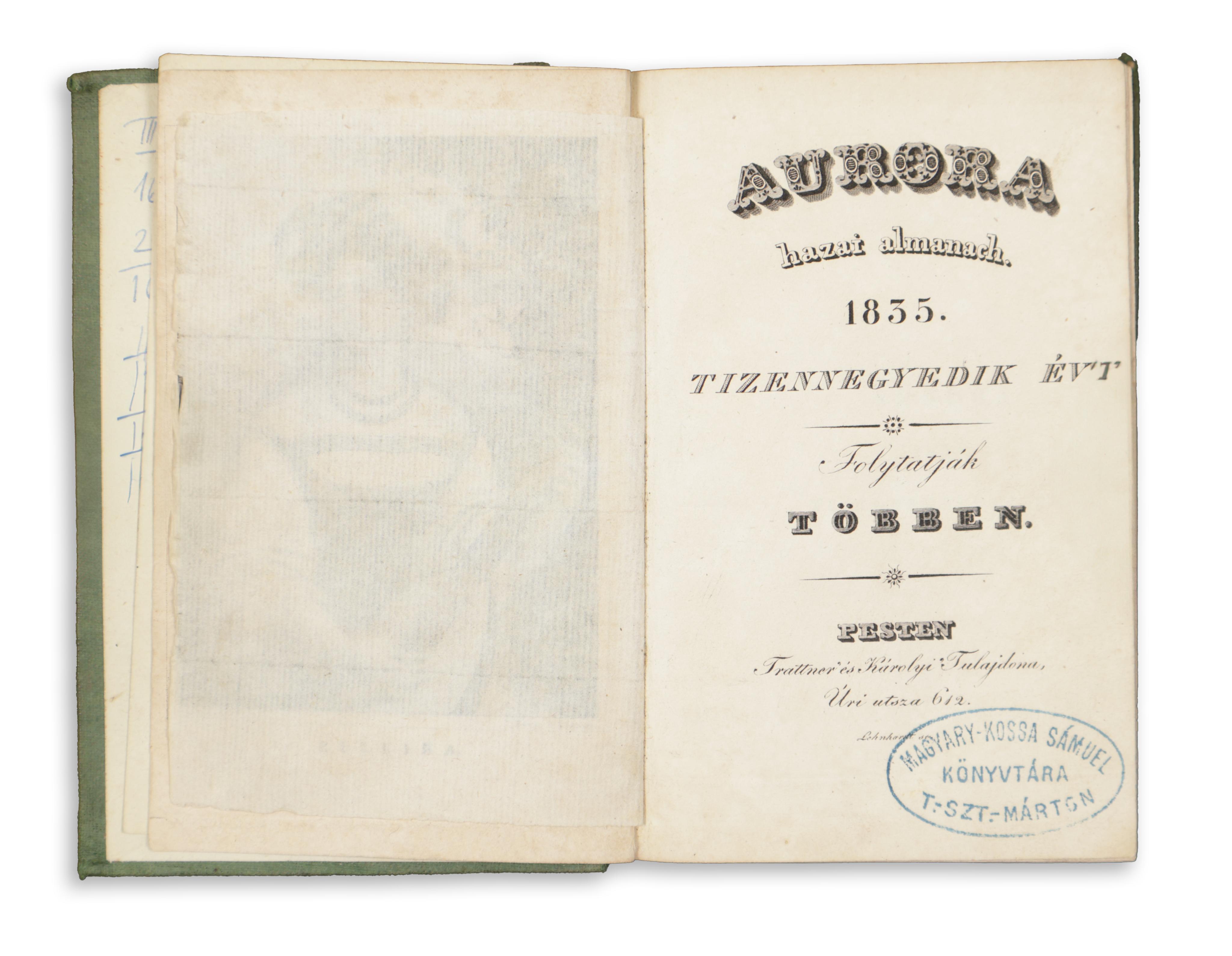 Aurora. Hazai almanach. 1835. Tizennegyedik év. Folytatják többen.