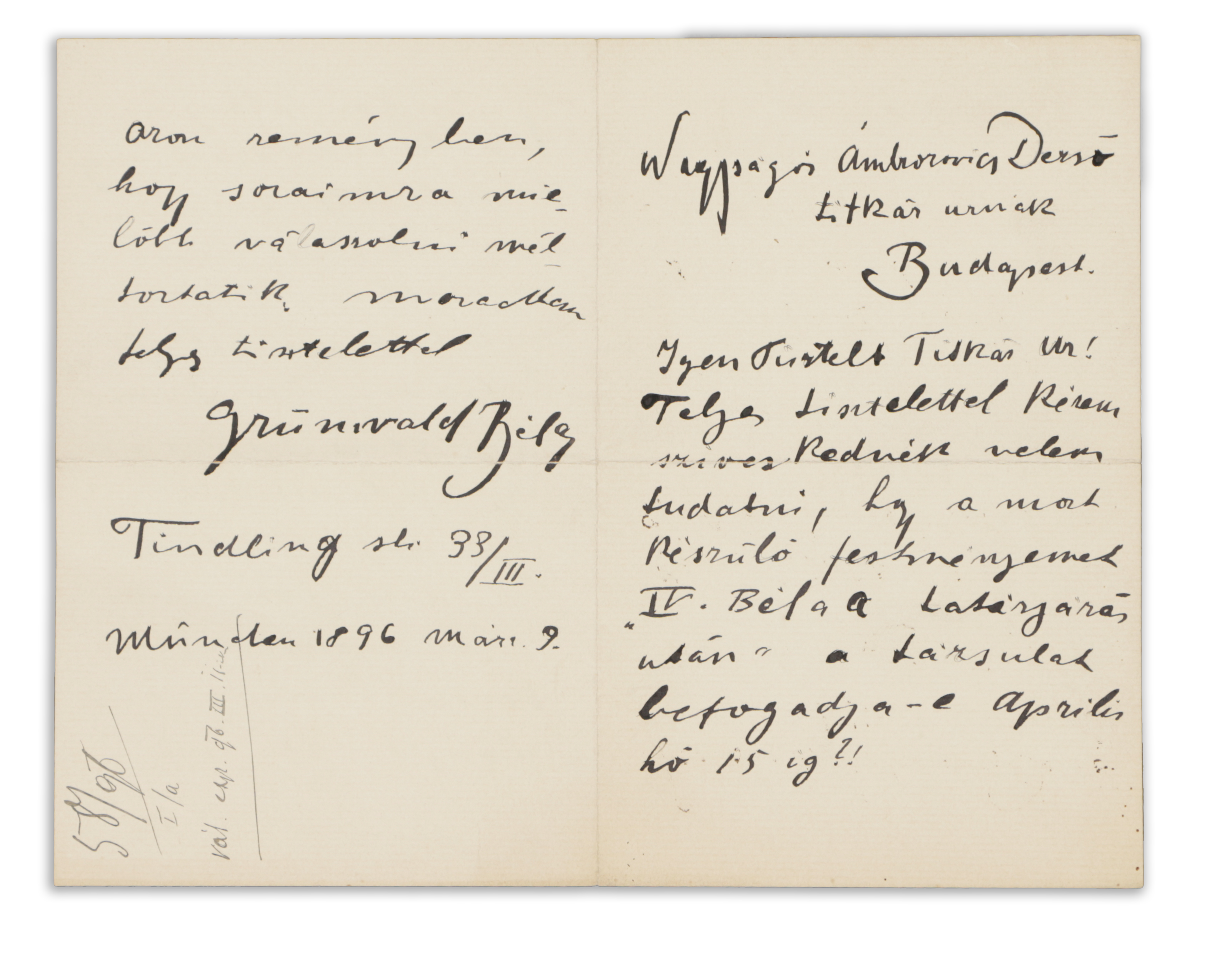 Paper, 2 folios three inscribed pages with autograph lines and signature of Béla Iványi Grünwald.