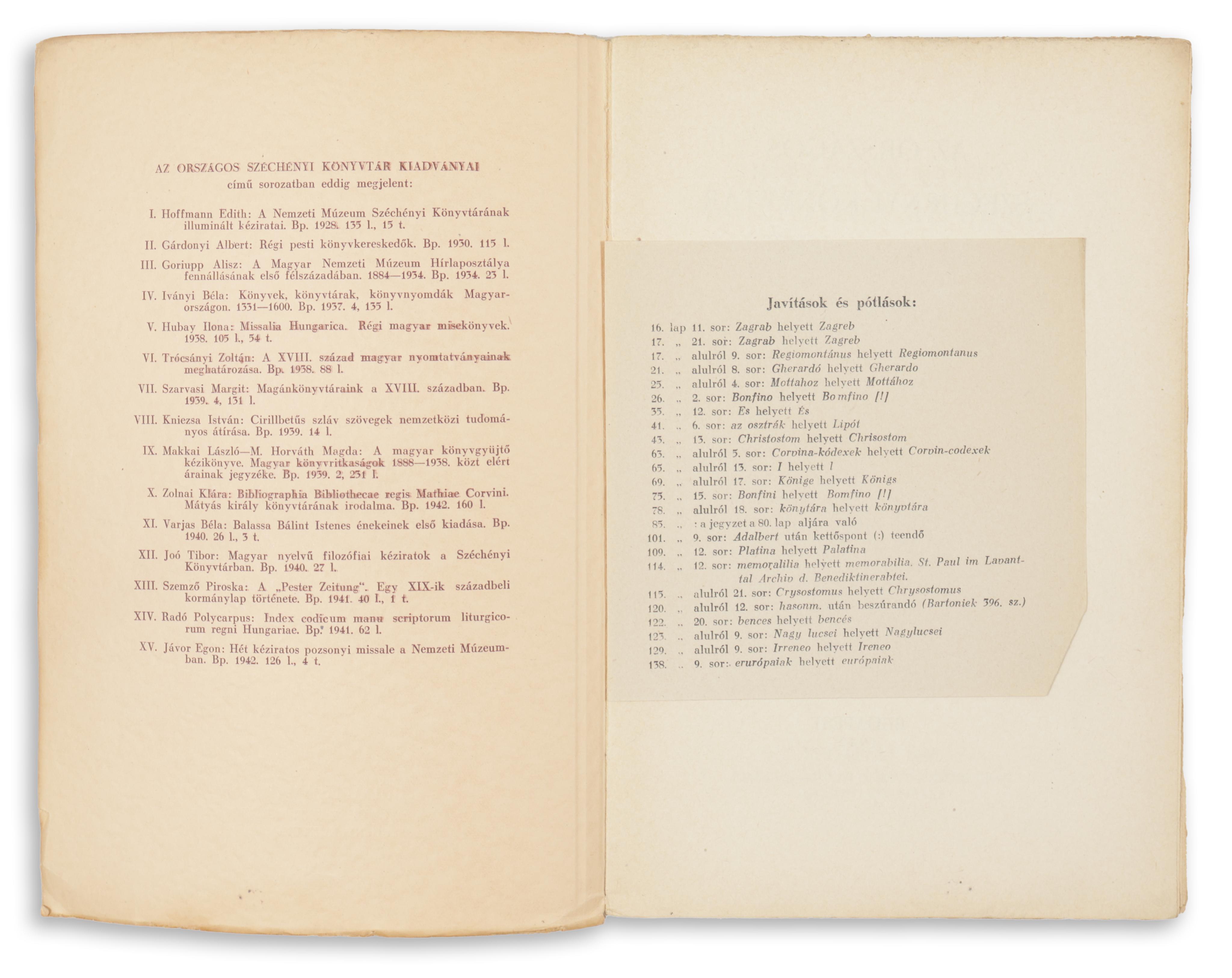 Budapest, 1942. OSzK [Dunántul, Pécsi egyetemi ny.] 160 p. Belehelyezve a hibajegyzék. /OSzK kiadványai X./