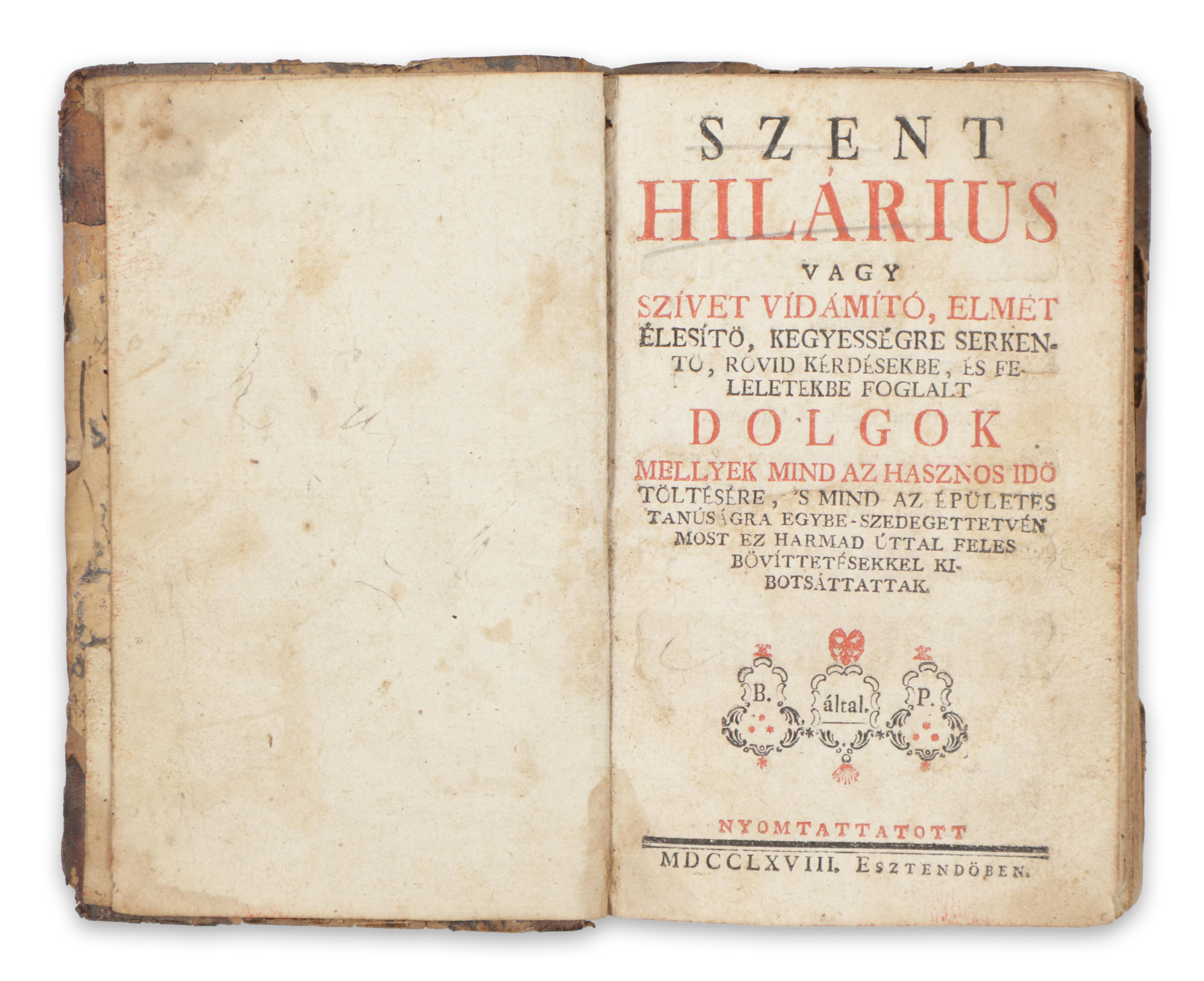 Szent Hilárius vagy szívet vídámító, elmét élesítö, kegyességre serkentö, rövid kérdésekbe, és feleletekbe foglalt dolgok, mellyek mind az hasznos idö töltésére, 's mind az épületes tanúságra egybe-szedegettetvén most az harmad úttal feles bövíttetésekkel ki-botsáttattak B. P. által.