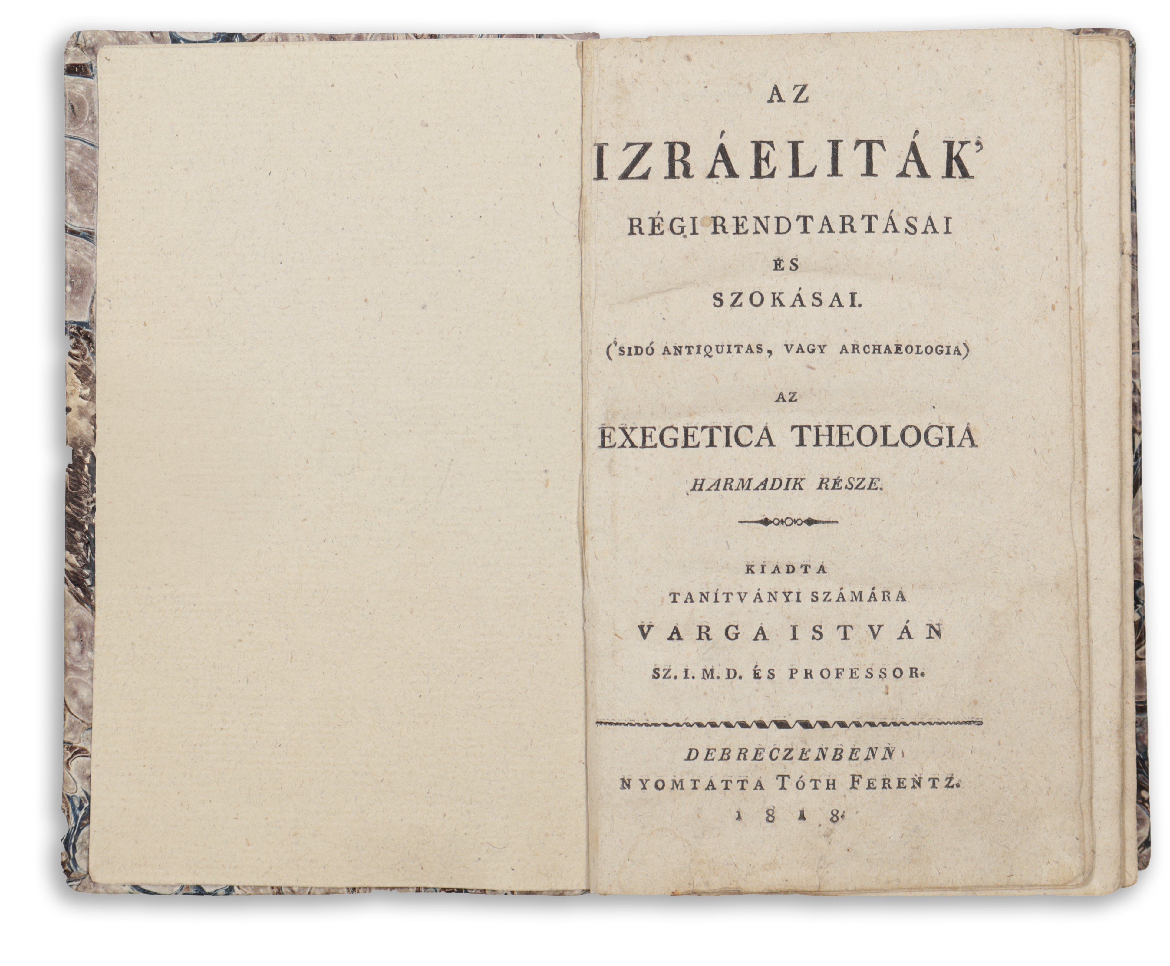 Varga István - Az Izráeliták' régi rendtartásai és szokásai. ('Sidó antiquitas, vagy archaeologia.) Az exegetica theologia harmadik része. Kiadta tanítványai számára ⁓ ⁓.