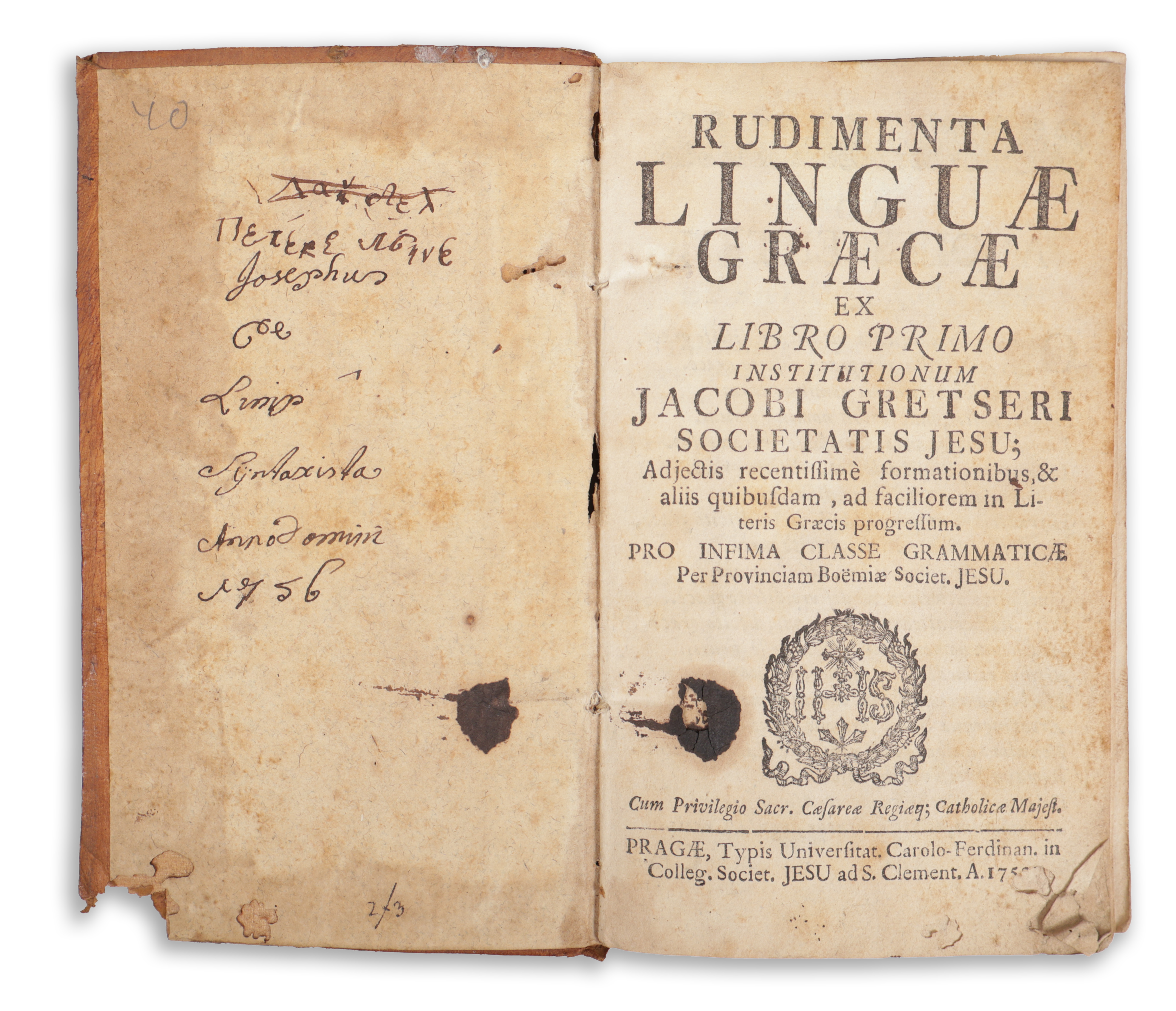 Pragae, 1753, Typis Universitat - Societ. Jesu ad S. Clement.Ár