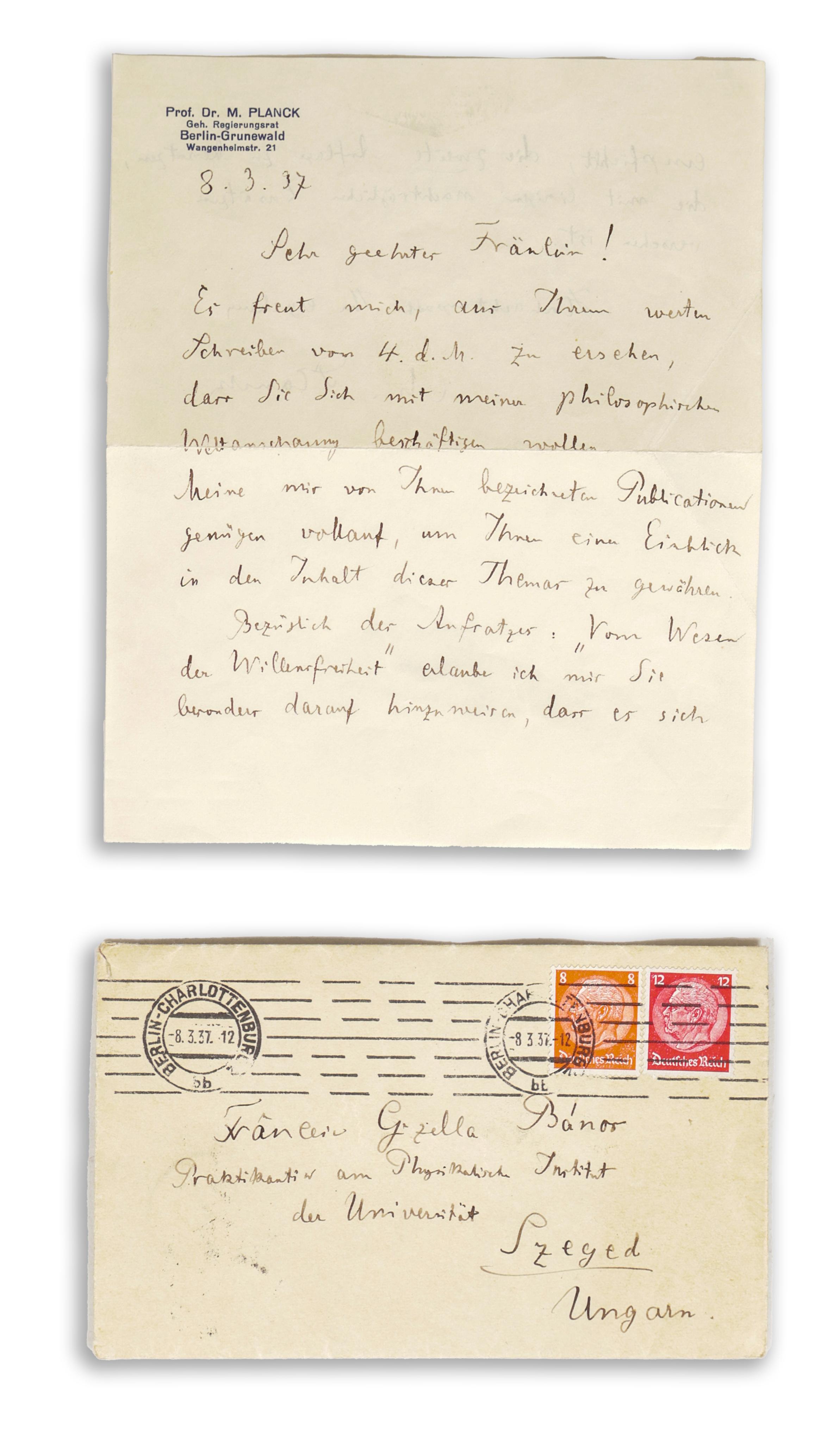 Max Planck válasza Bános Gizella levelére